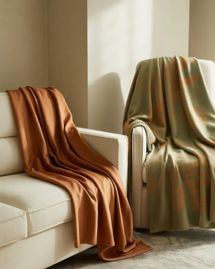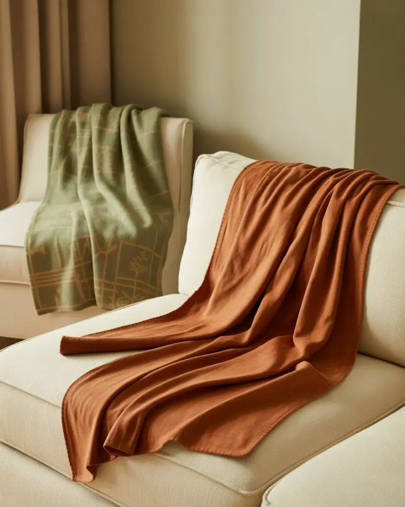 Drape a terracotta or sage throw over the arm of your sofa, fold a patterned blanket at the foot of your chair, and suddenly your neutral room has dimension. This is one of the easiest ways to add color without commitment—blankets are portable, washable, and seasonally swappable. It’s a strategy that works in any room, from studio apartments to sprawling suburban homes.