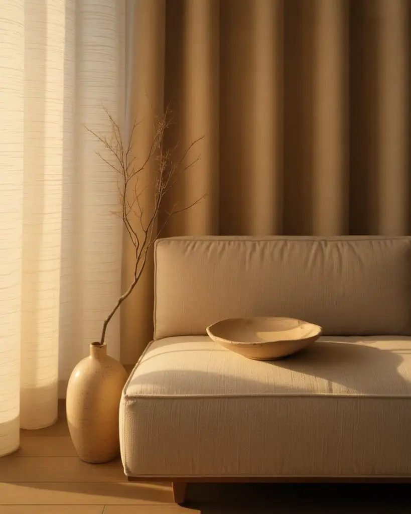 Take inspiration from wabi-sabi principles by embracing imperfection, natural materials, and restraint. A low-profile sofa, a handmade ceramic bowl, and a single branch in a simple vase can be enough. The neutral palette—shades of rice paper, stone, and unfinished wood—creates a serene, meditative environment that resists clutter.