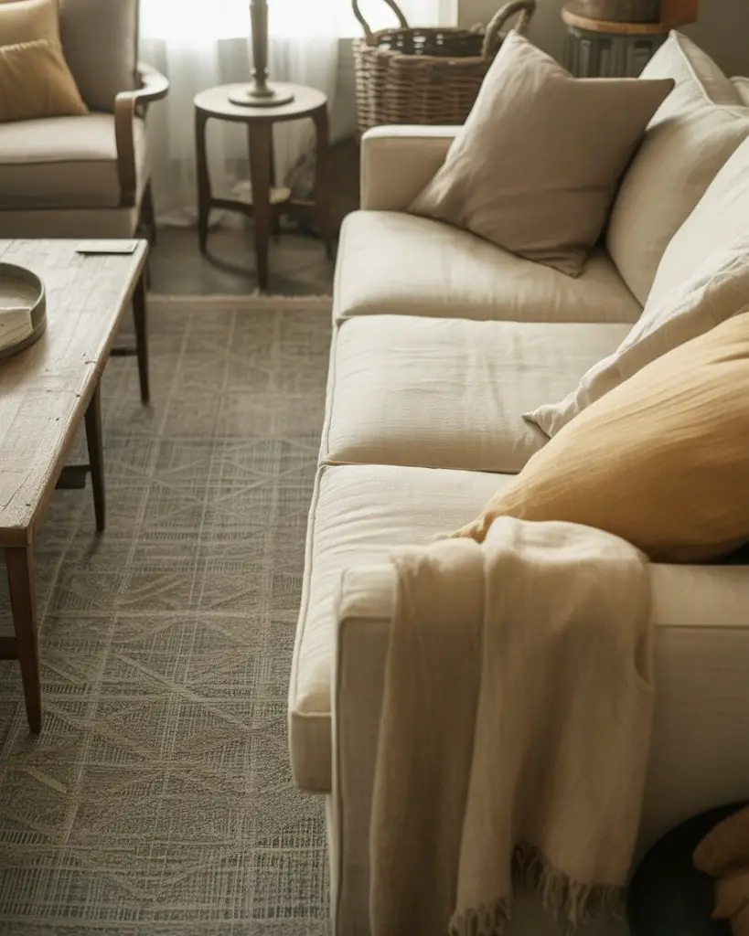 Where it works best: Homes in warmer climates or spaces that get a lot of southern or western sun. The palette naturally reflects light, keeping rooms cool and bright even on the hottest days. It’s also forgiving—spills and wear blend into the relaxed, lived-in vibe.