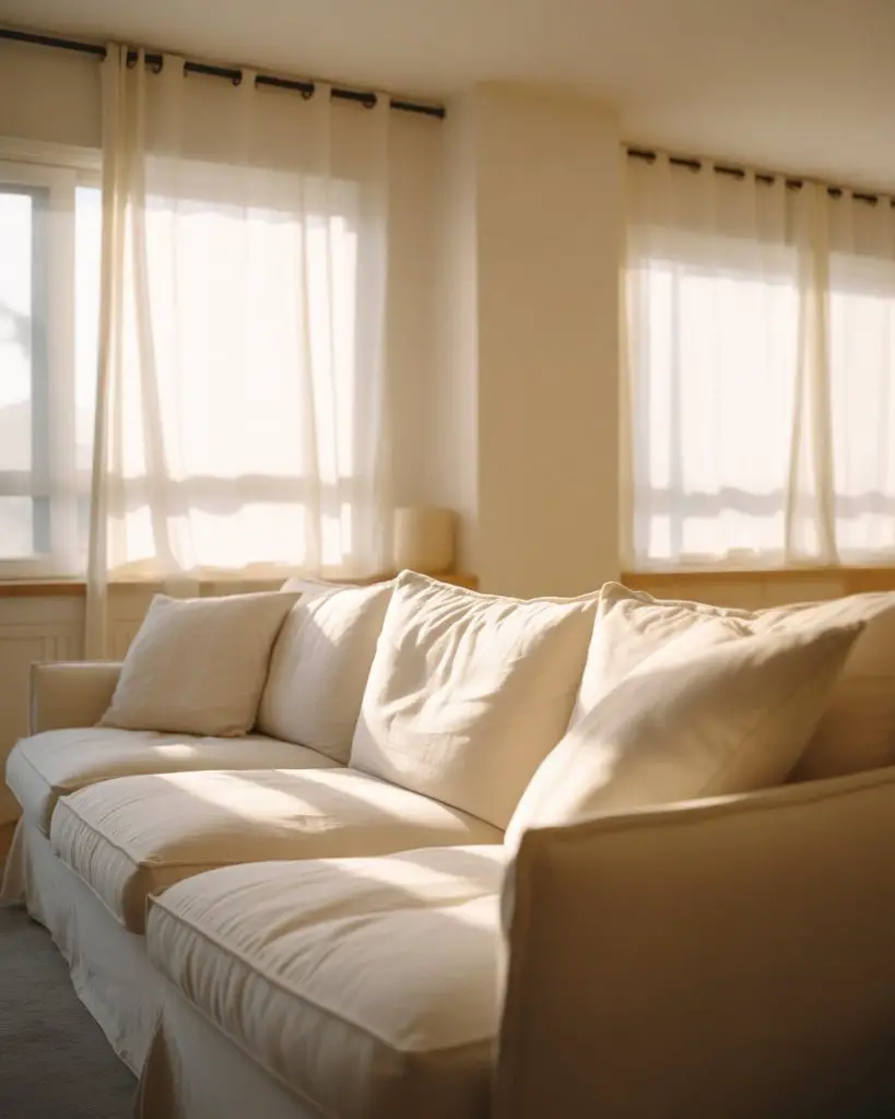 Sometimes the simplest approach is the most powerful. Soft white walls, white linen upholstery, and sheer curtains that let sunlight flood in create a room that feels open, airy, and endlessly flexible. This is the ultimate neutral foundation—easy to accessorize, easy to refresh, and universally flattering. It’s also the most popular choice on Pinterest for good reason.