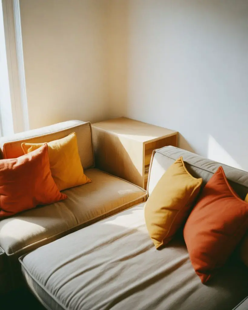 A neutral sofa becomes instantly more dynamic when you introduce a single pop of color—think burnt orange, deep teal, or mustard yellow. Keep the rest of the room subdued, and let two or three accent pillows carry the energy. This strategy is perfect for renters or anyone who likes to refresh their space seasonally without major investment.