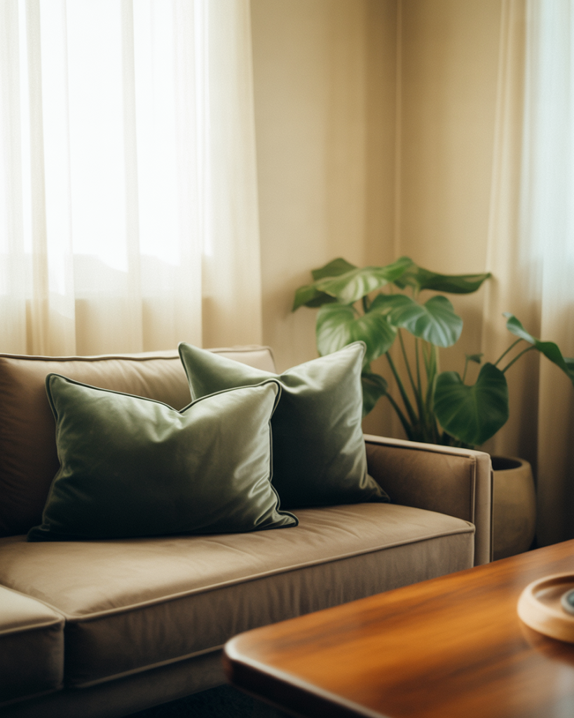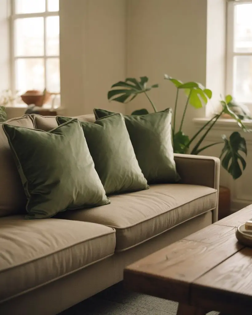 Olive, sage, and forest green are having a resurgence, and they pair beautifully with warm taupes and creams. Introduce green accents through potted plants, velvet cushions, or even a painted accent wall behind a bookshelf. This combination feels organic and lived-in, especially when natural light filters through sheer curtains.