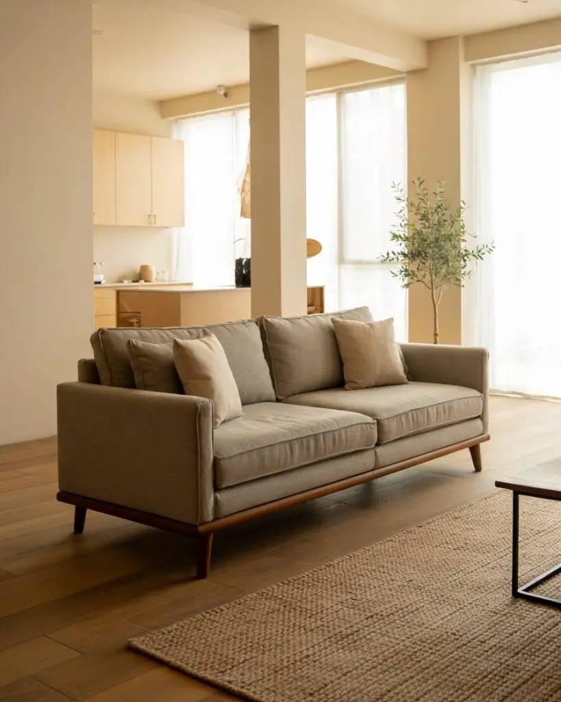 In open floor plan designs, furniture height matters more than most people realize. Low-profile sofas, armchairs, and even dining tables keep sightlines clear from the kitchen to the living area, making the entire space feel larger and more connected. This is especially helpful in small apartment layouts where bulky furniture can block natural light and create visual barriers. Look for pieces with exposed legs and slim silhouettes that let light pass underneath.