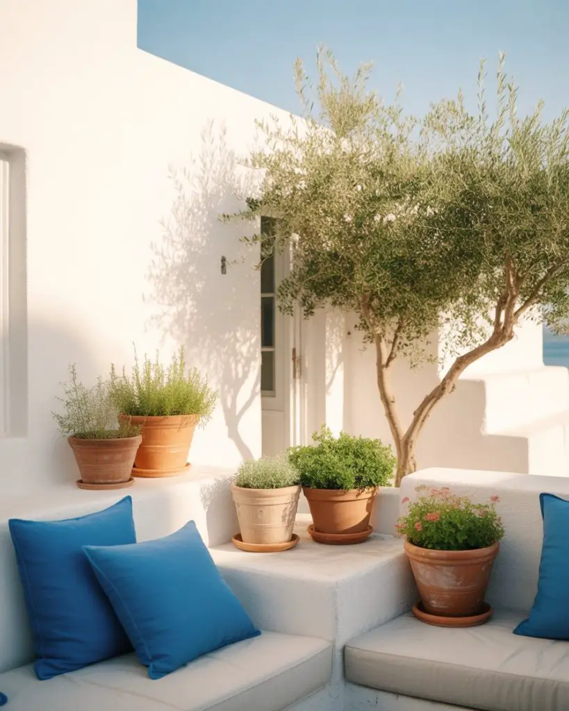 Real homeowner behavior: people who commit to this look often keep it year-round, swapping only small seasonal accents like throws or candles. The consistency is part of the appeal—it feels polished without being fussy. If you’re in a coastal area like San Diego or Miami, this style feels natural. Inland, it still works but may require more intentional watering to keep plants thriving. One tip: choose outdoor fabrics that resist fading, as white and blue both show wear quickly in strong sun.