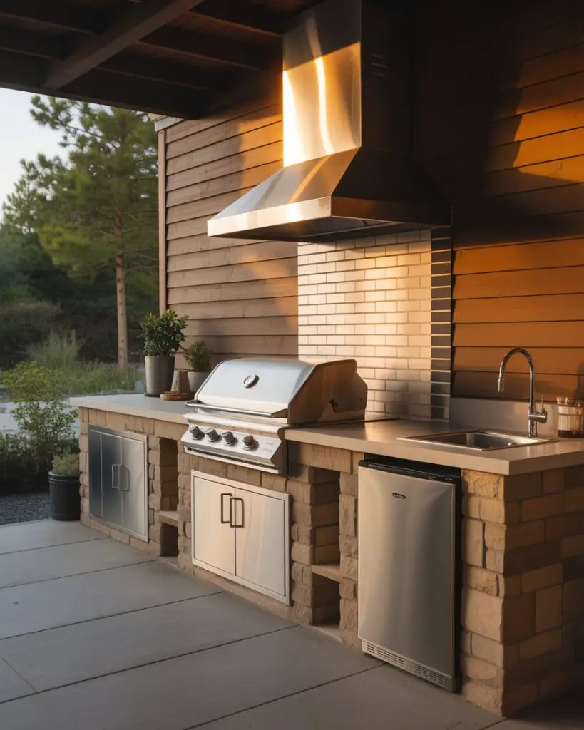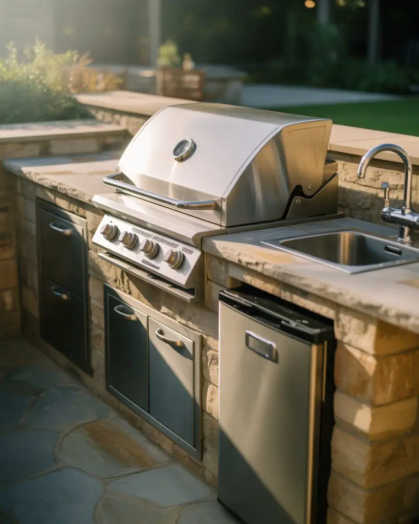 An outdoor kitchen is the ultimate upgrade for serious grillers and entertainers. Start with a built-in grill, then add a sink, mini fridge, and counter space for prep. If budget allows, include a pizza oven or smoker. This setup turns your patio into a full cooking zone, reducing trips back and forth to the indoor kitchen. It’s especially popular in warm climates where outdoor cooking happens year-round, and it works beautifully in large backyards with room to build.