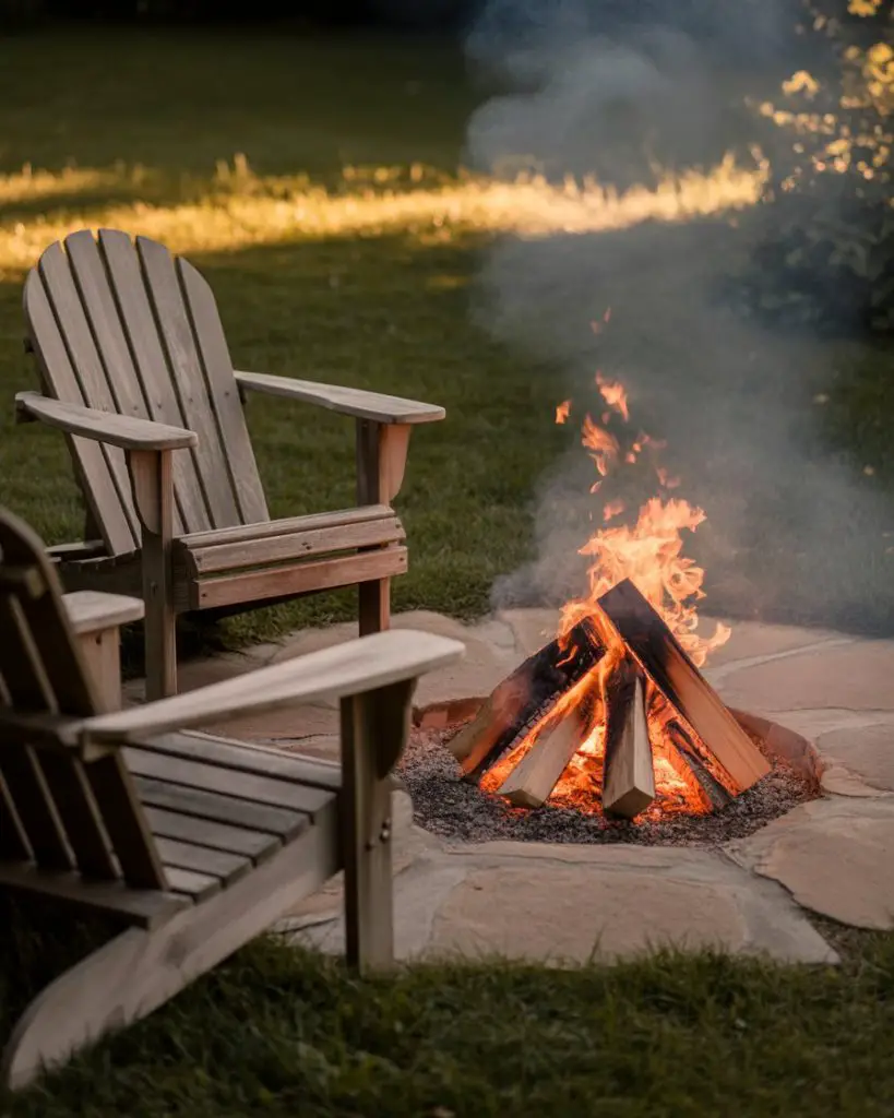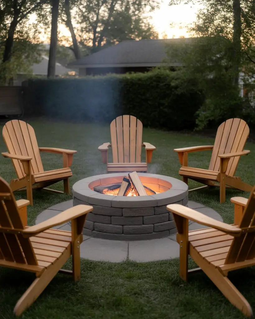 Nothing beats the draw of a fire pit on a cool evening. Arrange four to six Adirondack chairs or low lounge seats in a circle around a stone or metal fire bowl, and you’ve got an instant social hub. This setup is especially popular in small spaces with fire pit configurations, where the fire becomes the focal point and the seating stays simple. Add a small side table for drinks and a storage bin for firewood, and you’re set for spontaneous s’mores nights or quiet solo evenings under the stars.