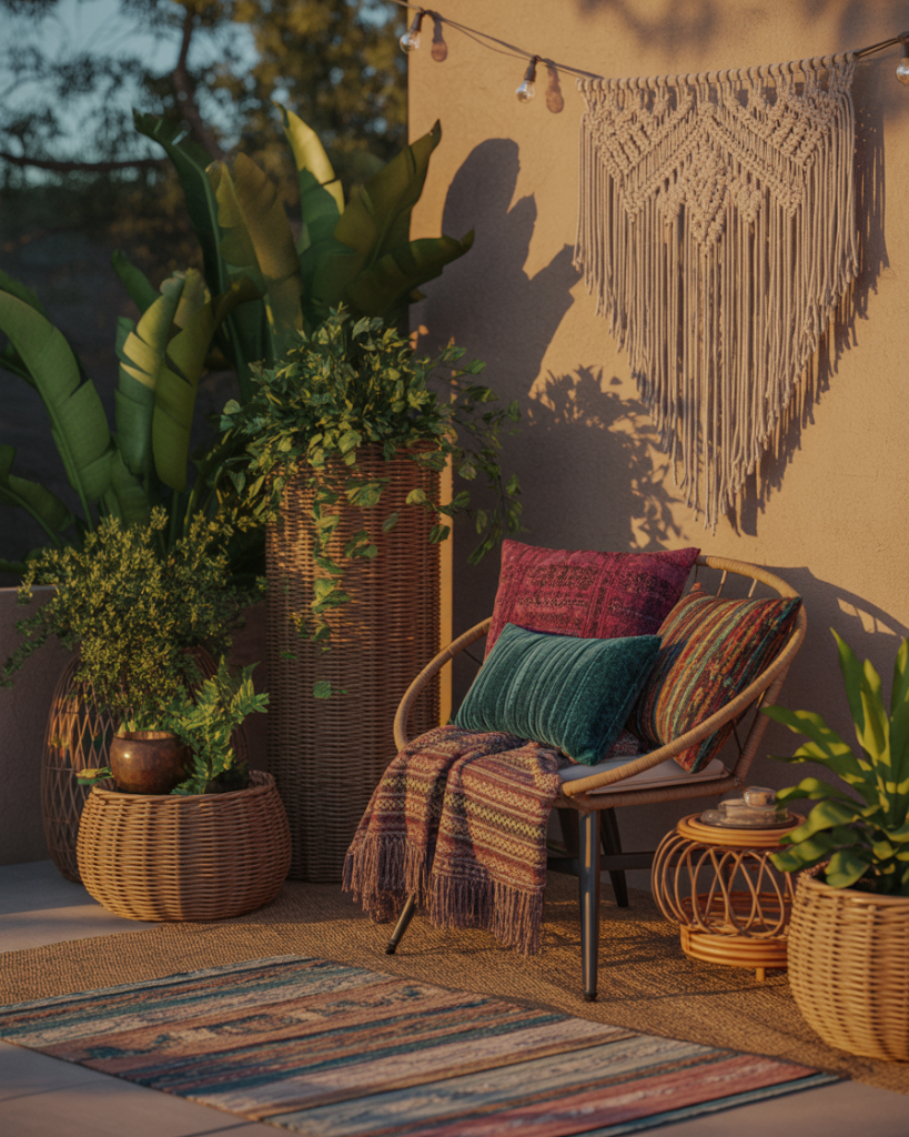 Expert-style commentary: the key to pulling off bohemian style outdoors is choosing weather-resistant versions of your favorite textiles. Look for outdoor rugs made from polypropylene, pillows with solution-dyed acrylic covers, and macramé made from synthetic cord. Natural fibers look great but mildew quickly in humidity or rain. In drier climates like Arizona or New Mexico, you have more flexibility, but anywhere with moisture requires synthetic upgrades to keep things looking fresh season after season.