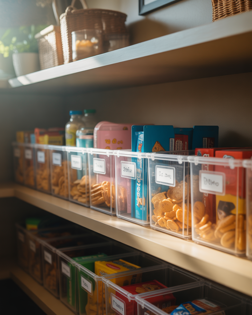 Creating a dedicated snack station with clearly labeled bins empowers kids to make their own choices while maintaining boundaries. Designate one lower shelf or a pull-out drawer as the snack zone, filling baskets with pre-portioned options—crackers, fruit pouches, granola bars. Label each container with words or pictures so even pre-readers can identify contents. This system reduces constant requests for help while teaching children to return items to their proper spots, building independence and organizational habits simultaneously.