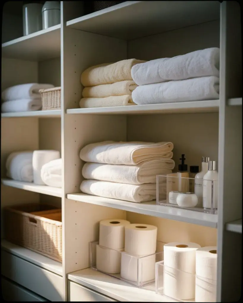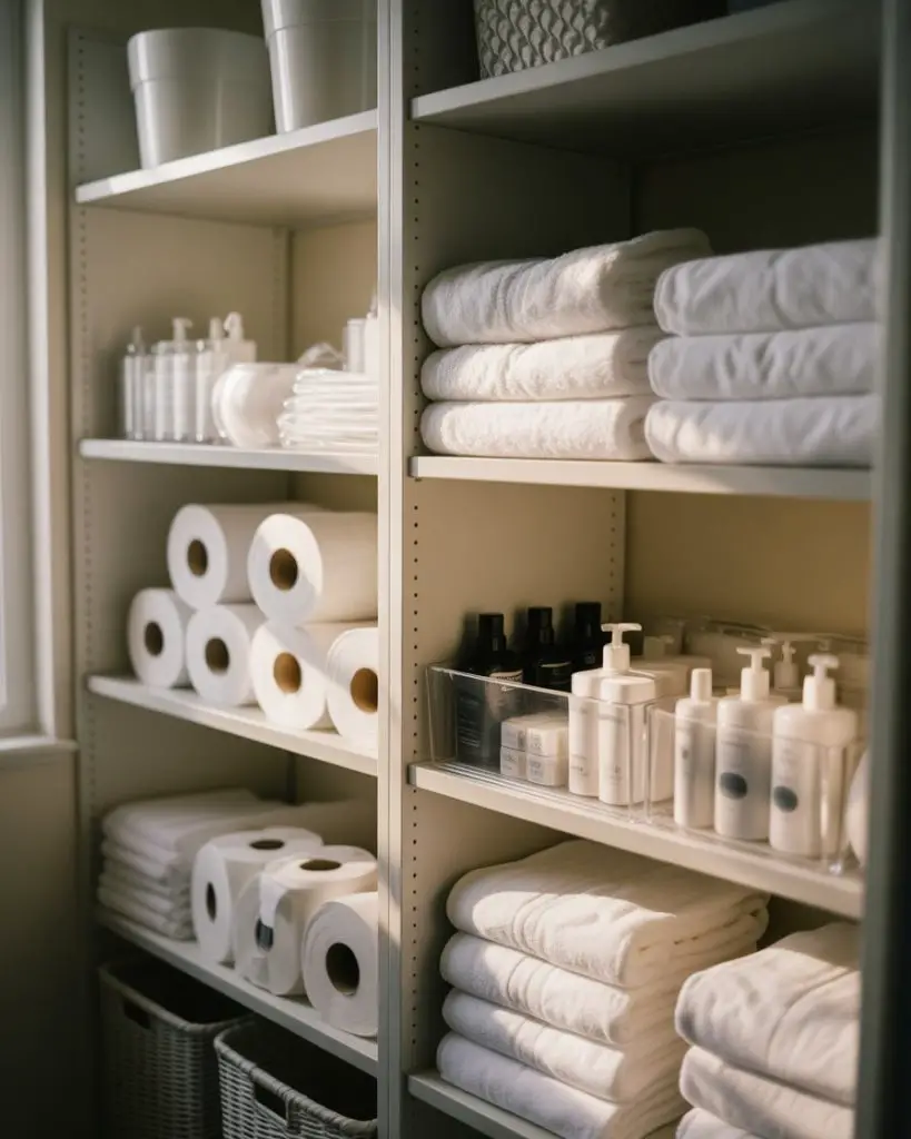 Expert organizers recommend this setup for families who buy in bulk at warehouse stores—the pantry becomes a home store where you “shop” as bathrooms run low on supplies. It eliminates last-minute drugstore runs and the frustration of discovering you’re out of something at the worst possible moment. The system works particularly well in multi-bathroom homes where restocking becomes a weekly chore rather than a daily scramble. It’s the unglamorous organizational move that quietly improves daily life.