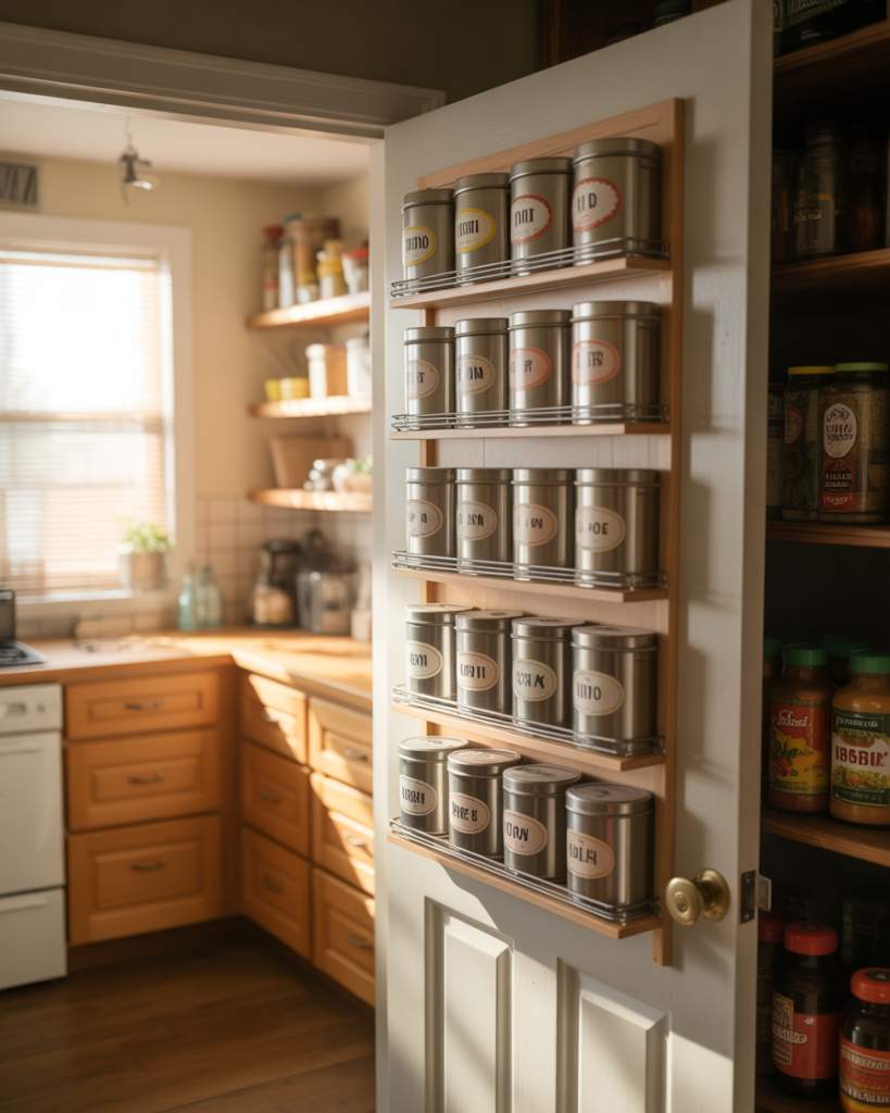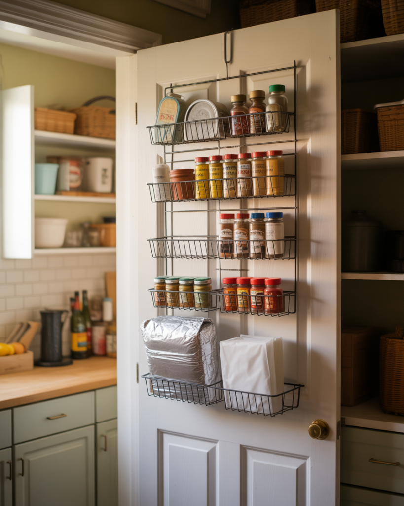 9. DIY Pantry Door Organization with Over-the-Door Racks