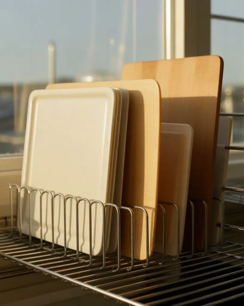Practical insight: dividers also work for organizing pot lids, which otherwise tend to clatter around in drawers or get stacked precariously. If you’re someone who owns multiple sizes of lids or platters, this system keeps them accessible without the risk of an avalanche every time you reach for one. It’s a small fix that has an outsized impact on daily ease.