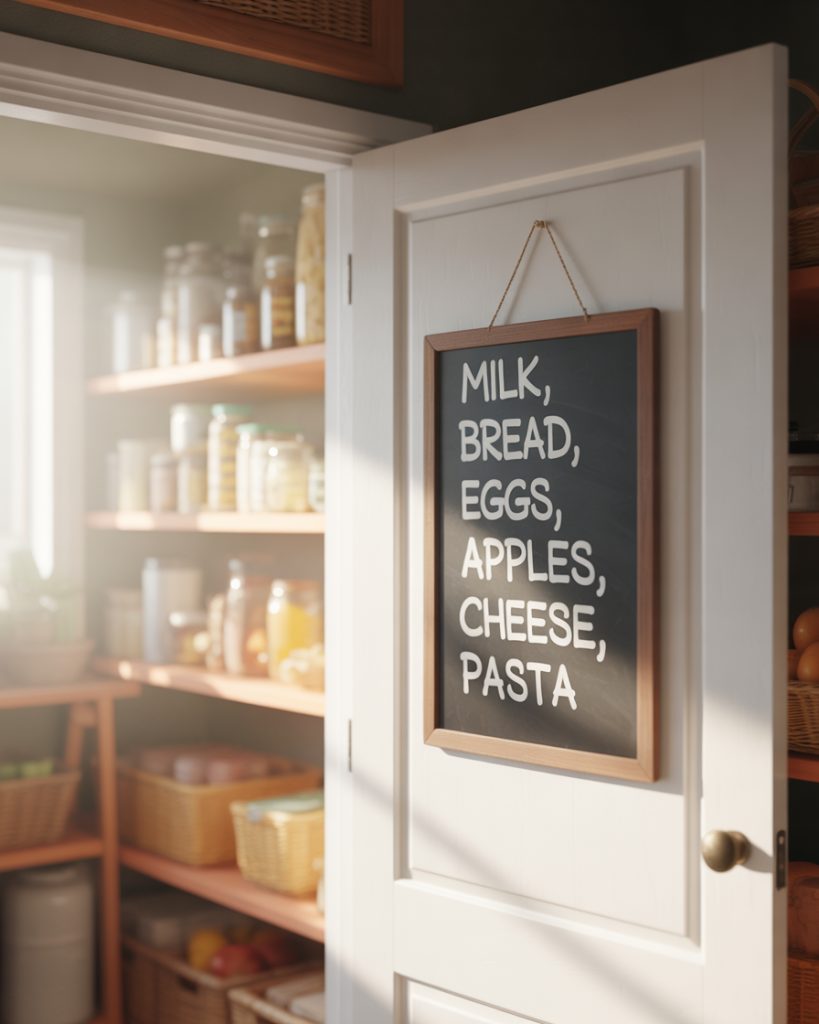 Practical insight: placing the chalkboard inside the door keeps it out of sight for a cleaner look, but it’s right there when you need it. Some families add a small cup or hook for chalk and an eraser, turning it into a complete system. It’s analog, yes, but there’s something satisfying about physically crossing off items or adding to the list as you go about your day.