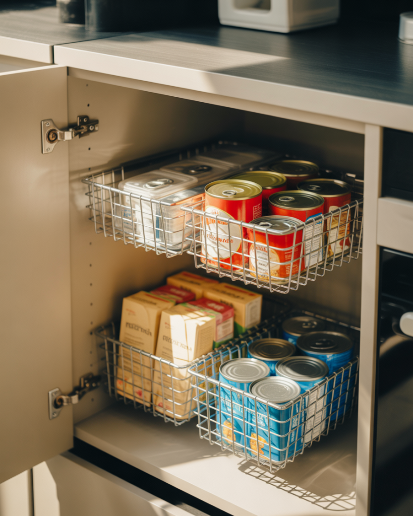 Expert-style commentary: this type of system is often recommended for corner cabinets or spaces where traditional shelves would waste potential. The baskets can be customized to different heights, so you might have shallow ones for spices and deeper ones for bulkier items. If you’re planning a kitchen remodel or pantry overhaul, sliding wire baskets are worth considering for their blend of durability and ease of use.