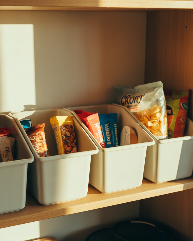 Real homeowner behavior: many people start with just three or four bins and add more as they figure out what categories actually make sense for their household. You might discover that grouping all your baking essentials together saves time, or that separating kids’ snacks from adult options reduces after-school chaos. The flexibility is the beauty—rearrange as your needs shift without feeling locked into an expensive system.