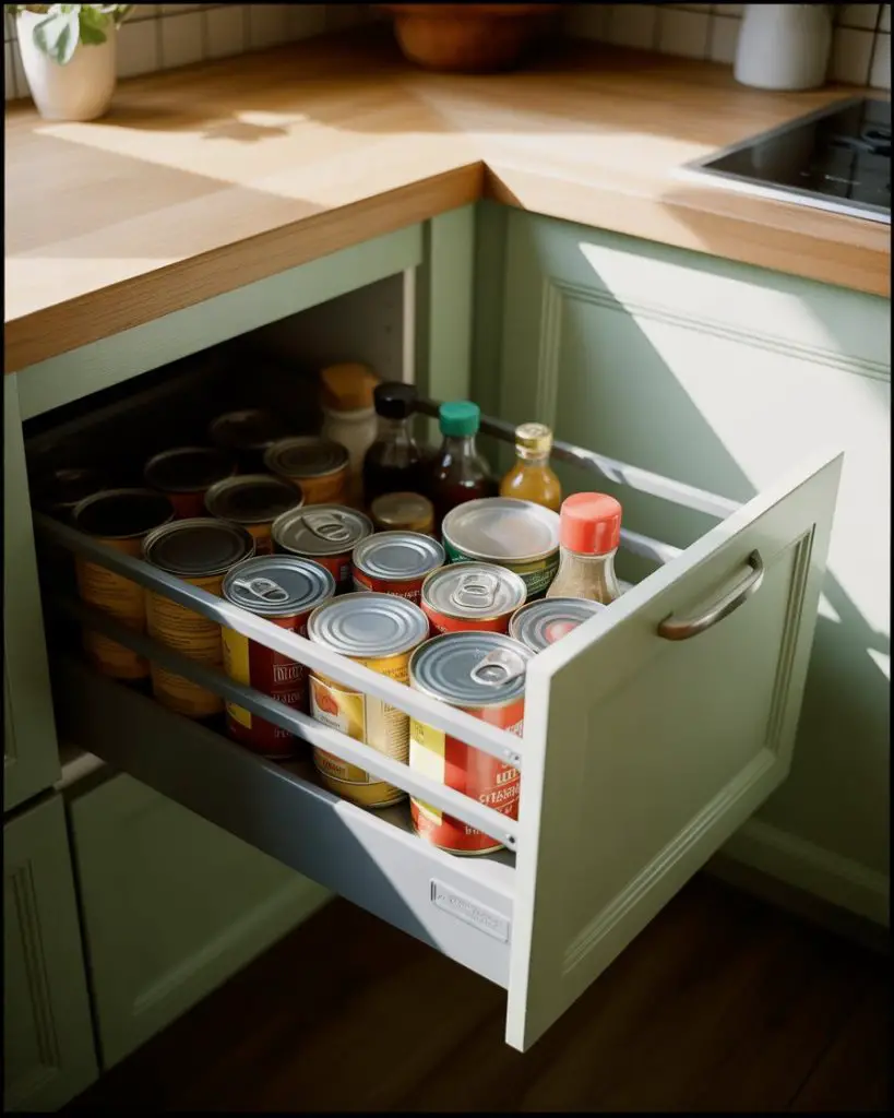 Deep cabinet shelves can become black holes where canned goods and boxes disappear forever. Installing pull-out drawers—either DIY or custom—transforms that dead space into accessible storage. You slide the drawer out like a file cabinet, revealing everything at once. This is a favorite upgrade in kitchen renovations, particularly for households that cook frequently and need quick meals prep to feel seamless.