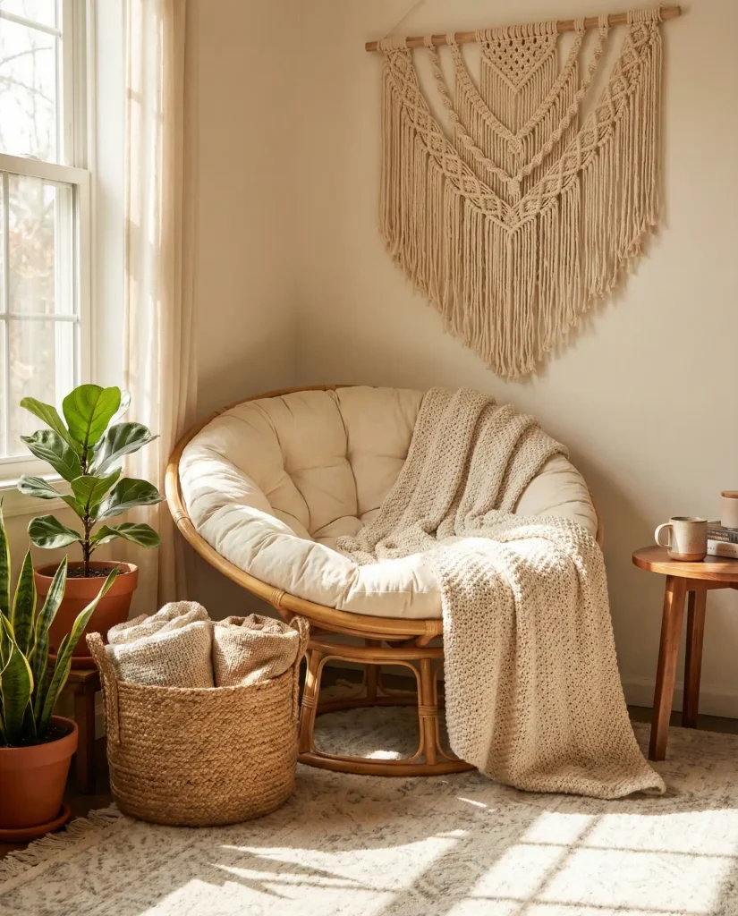 5. Boho Corner with Macramé and Natural Fibers