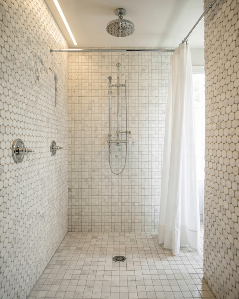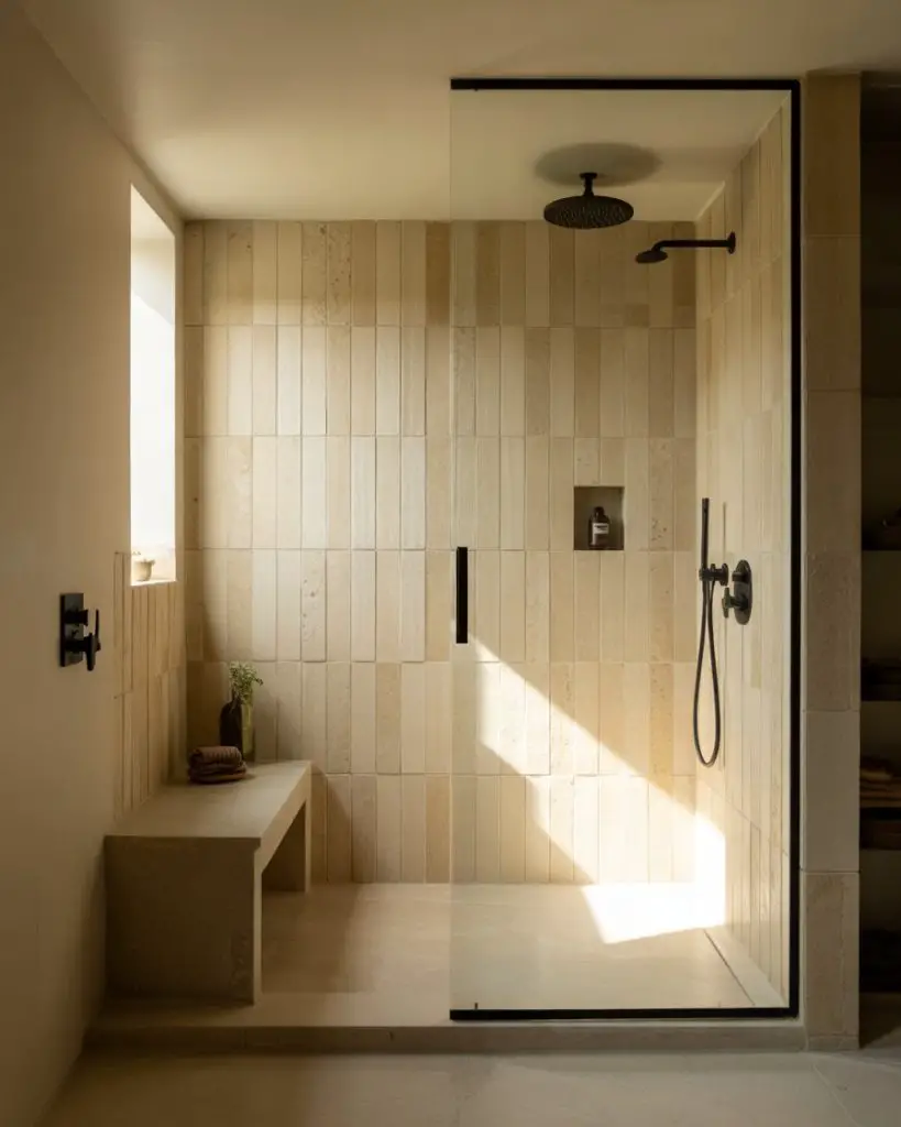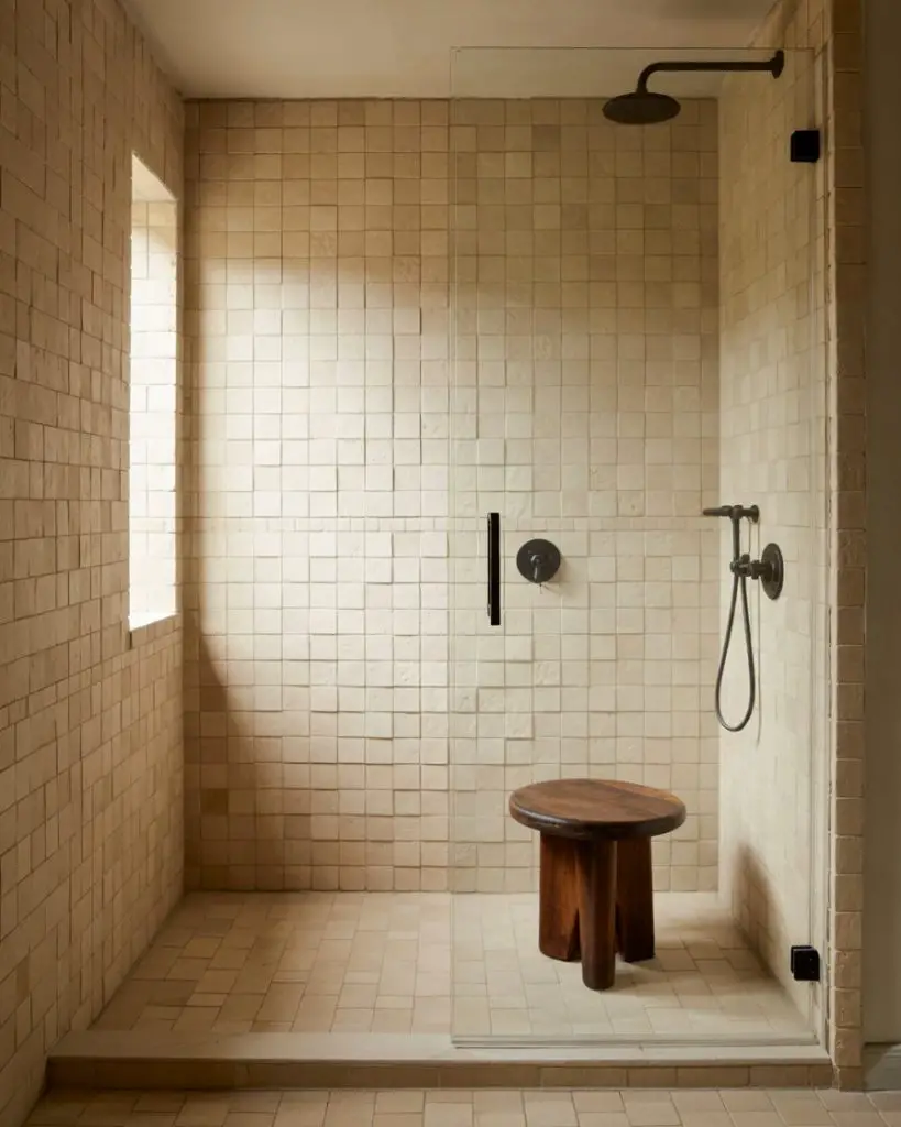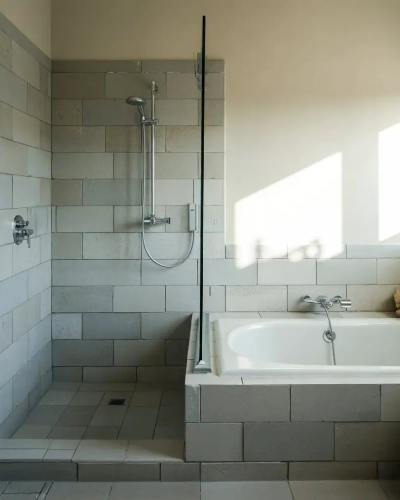 This works best in homes with a minimalist or Scandinavian aesthetic, where the focus is on texture and quality over color and pattern. It’s also a forgiving approach—because everything is in the same tonal range, small imperfections or slight color variations are less noticeable. And it’s timeless; you won’t look at this shower in five years and feel like it’s dated.