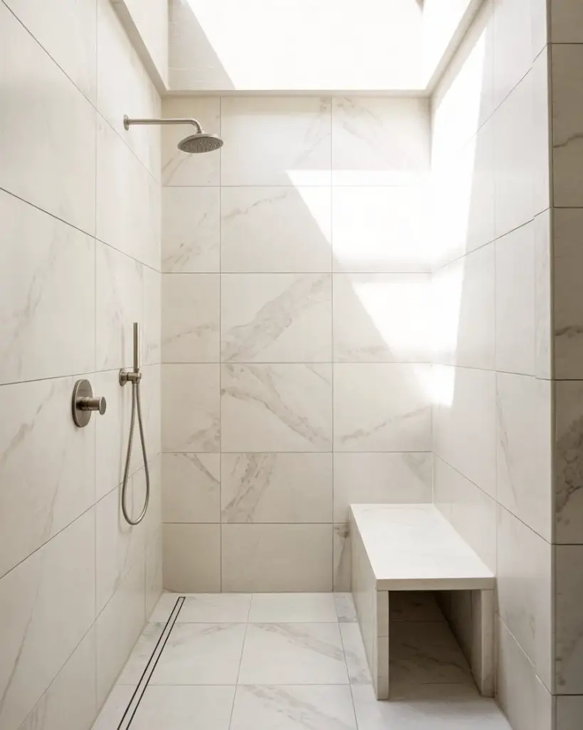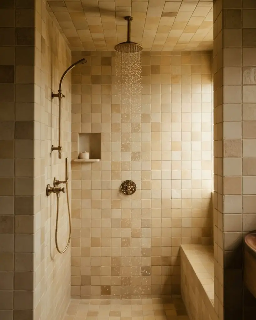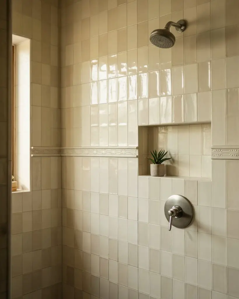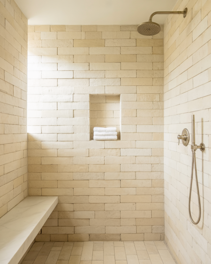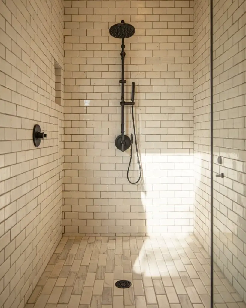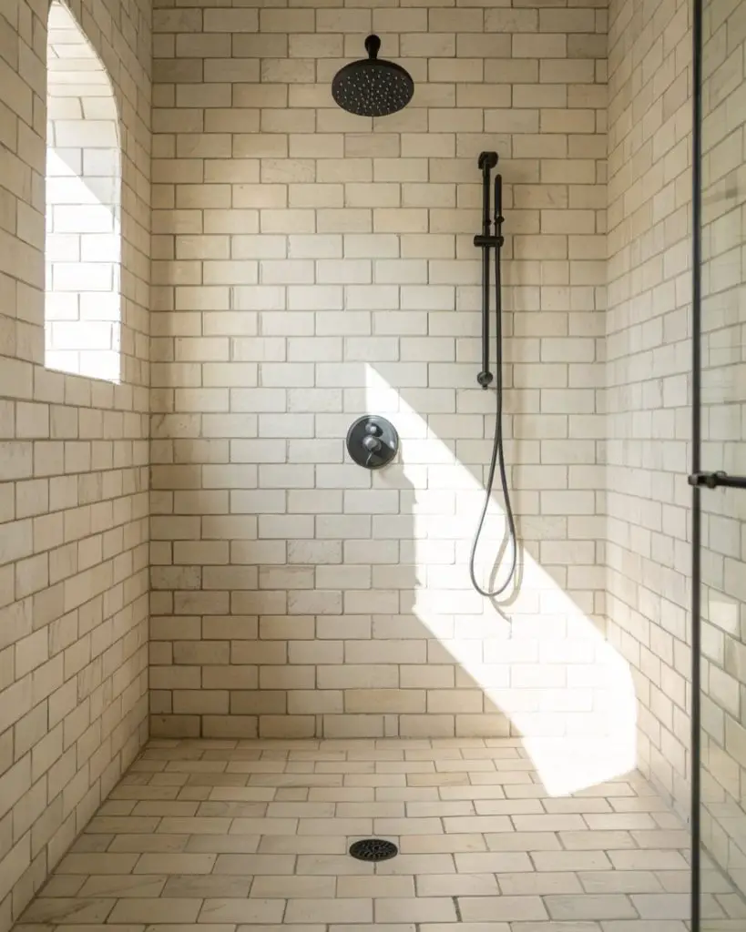 One thing designers often mention: neutral doesn’t mean boring. The beauty of these tiles is how they age—they hide water spots and soap residue better than stark white, which means less scrubbing and more enjoying your shower. In homes with hard water, this is a game-changer. Pair with warm brass or matte black hardware to add just enough contrast without breaking the soft, cohesive feel.