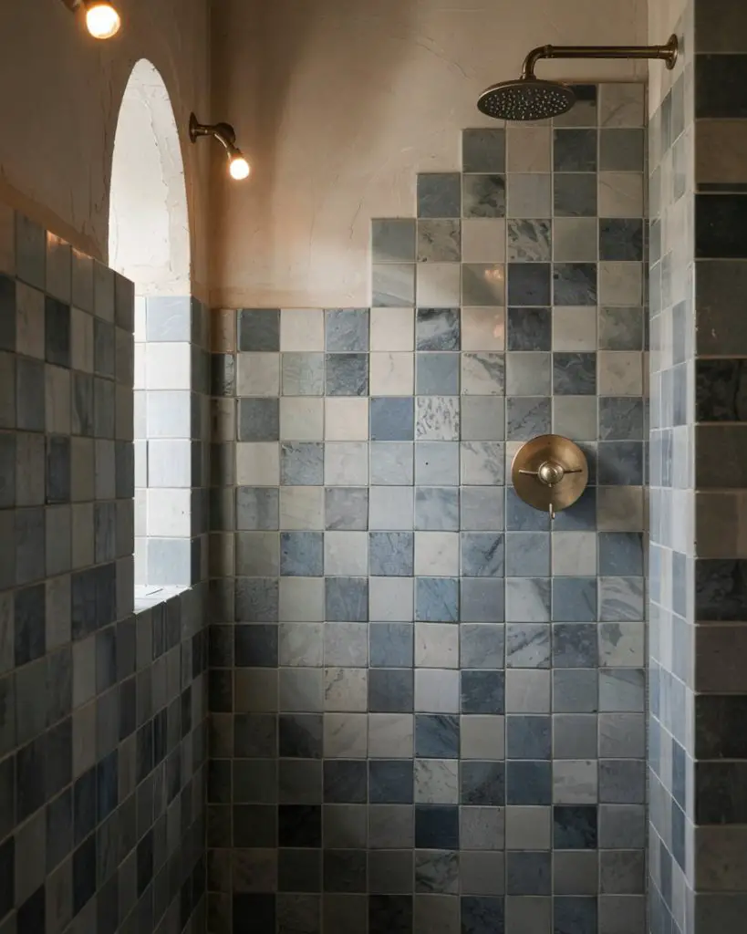 This is a great option if you’re on a budget but want a custom look. Mosaic sheets are often sold in affordable mesh-backed panels, making them easier to install than you’d think. They’re also incredibly durable and easy to clean, despite the smaller tiles and more grout lines. Many homeowners use mosaic in the shower niche or on the back wall behind the showerhead, creating a focal point without the expense of covering every surface.
