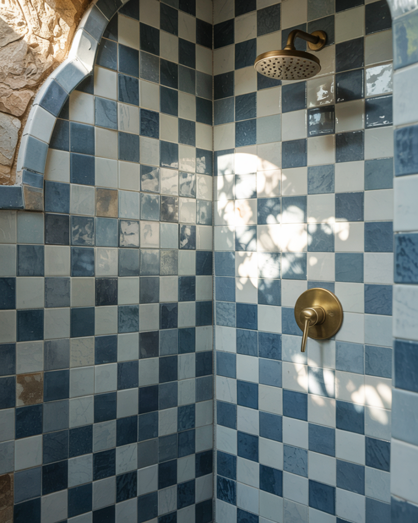 Inspired by Greek islands and Spanish coastlines, Mediterranean tile brings a vacation vibe home. Think handmade blue and white tiles with slight variations in color and shape, often in a zellige or subway format. This look is perfect for a coastal or eclectic bathroom, and it pairs beautifully with natural textures like rattan, linen, and whitewashed wood. In 2026, this style feels collected and personal rather than overly themed.