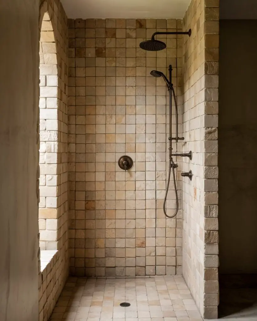 For a more grounded, earthy vibe, rustic stone tile brings warmth and texture into the shower. Think tumbled limestone, rough-hewn slate, or even river rock accents. This style works beautifully in homes with exposed beams, reclaimed wood, or other natural materials. The low-maintenance aspect is a bonus—once sealed properly, stone tile is durable and ages gracefully. It’s a favorite in mountain homes and cabins, but it translates surprisingly well to suburban bathrooms too.