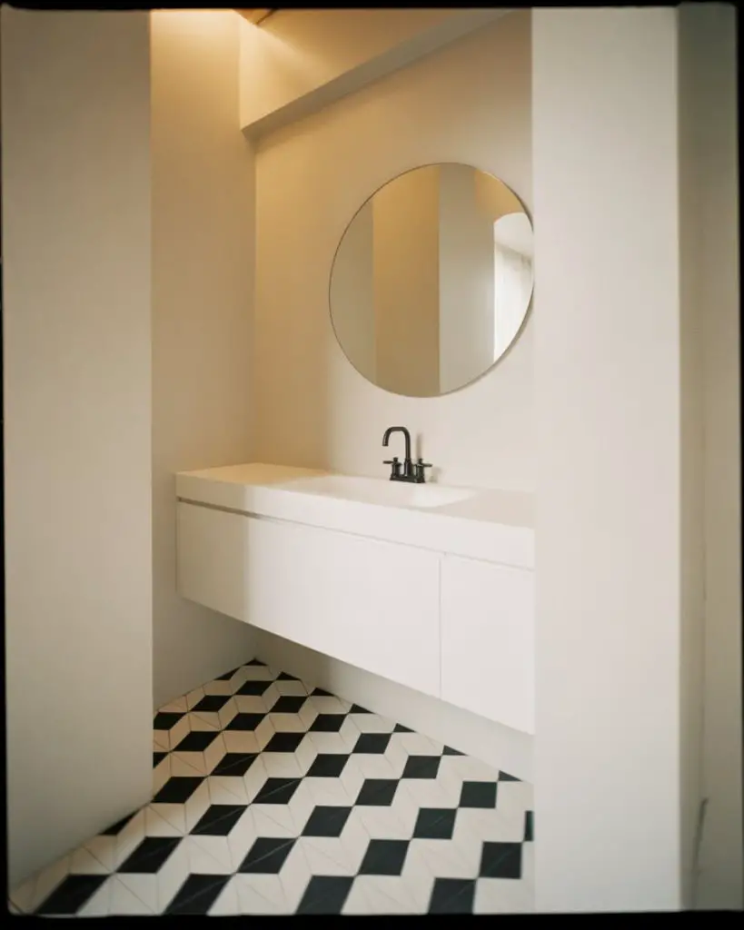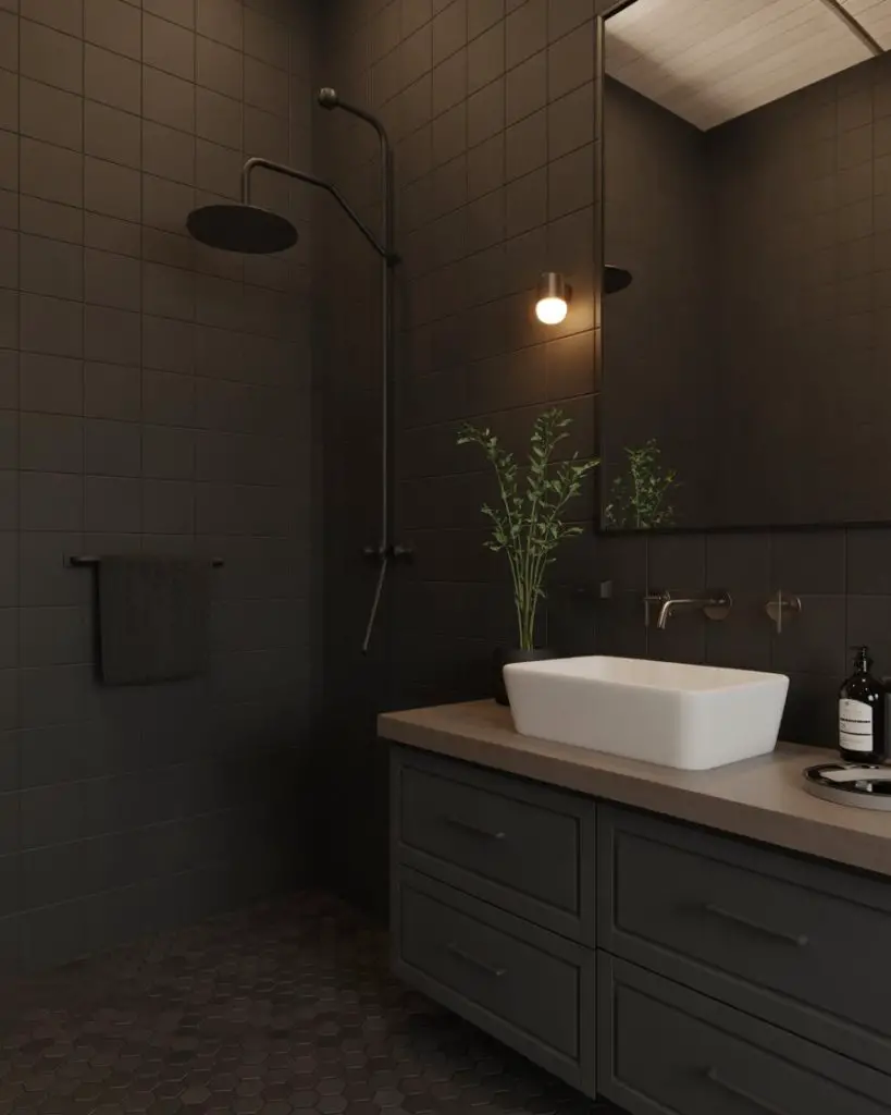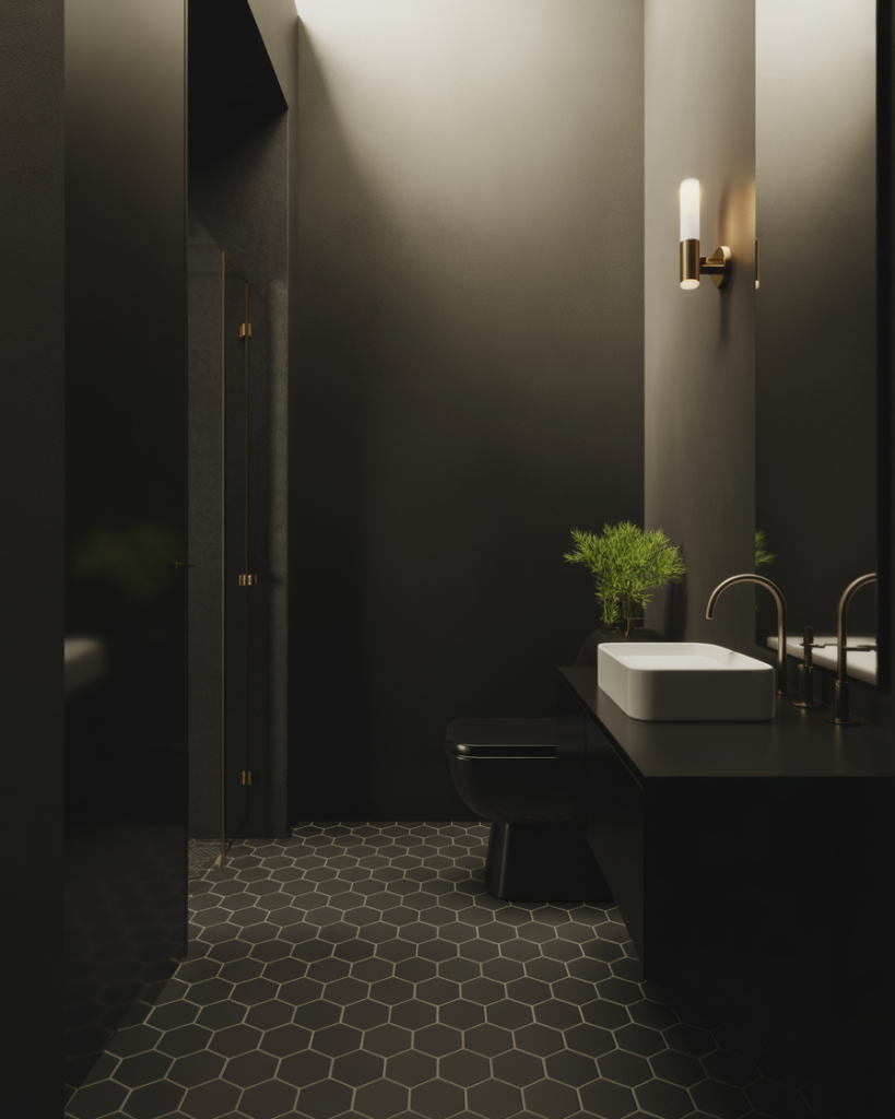 This is surprisingly budget-friendly if you’re starting from scratch—black paint is inexpensive, and white tiles are among the most affordable options available. A Boston condo owner transformed her dated almond-colored bathroom into a striking black-and-white space for under $2,000, doing the painting herself and splurging only on new fixtures. The all-black version does require excellent lighting, though. You’ll need both task lighting near the mirror and ambient lighting throughout to prevent the space from feeling cave-like. In rooms without windows, consider a bright white ceiling to reflect light downward.