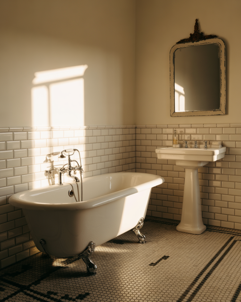 Blending vintage aesthetics with contemporary plumbing creates bathrooms that feel soulful and unique. Think clawfoot tubs retrofitted with modern rain showerheads, pedestal sinks with updated faucets, or vintage medicine cabinets refurbished with new mirrors and hardware. This beautiful approach appeals to homeowners in older properties who want to honor original architecture while enjoying current conveniences. The juxtaposition between old and new creates visual interest that makes small spaces feel curated rather than cramped.