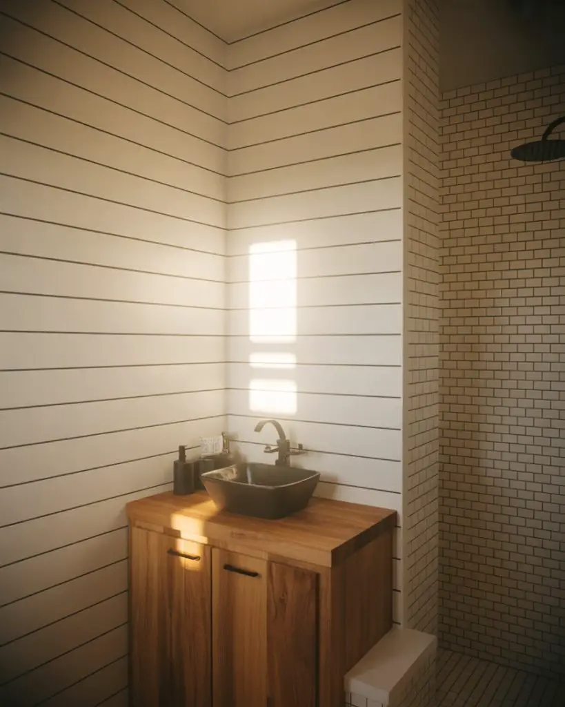 Moving beyond flat paint, 2026 is seeing more dimensional wall treatments in small bathrooms—shiplap, board-and-batten, textured plaster, or even three-dimensional tile. These surfaces catch light differently throughout the day, creating visual movement and depth. When painted in light colors, textured walls add character without making the space feel smaller. This is particularly effective in bathrooms with limited architectural detail, where flat drywall can feel builder-basic and uninspired.