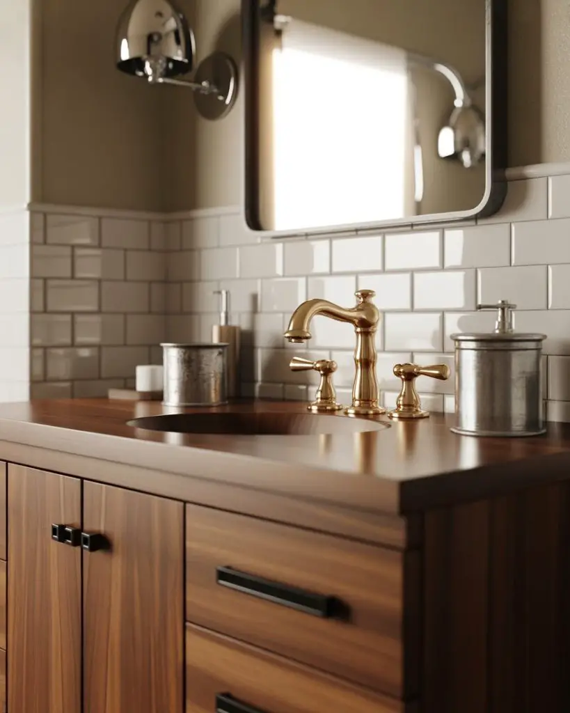 A budget angle to consider: mixing metals strategically allows you to splurge on one statement piece while using more affordable fixtures elsewhere. You might invest in a stunning brass faucet but use budget-friendly black knobs and chrome towel bars, creating a high-end look without the high-end price tag across every element. One homeowner in Philadelphia scored a vintage brass mirror at a flea market for $45 and built her entire bathroom’s metal palette around it, mixing in affordable new pieces that complemented the antique brass tone. The total hardware and fixture cost came in under $600 but looks like a designer’s carefully curated selection.