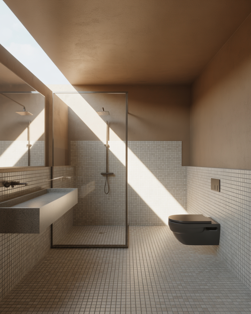 Exposed pipes, concrete finishes, and matte black metal aren’t just for loft apartments anymore—this industrial aesthetic translates surprisingly well to small bathroom spaces. The key is balancing raw materials with warmth: pair concrete tiles with a wooden vanity, or offset black steel framing with soft white subway tiles. This style works because it embraces honesty—there’s no pretending the room is larger than it is, and the utilitarian approach actually makes tight quarters feel intentional rather than apologetic.