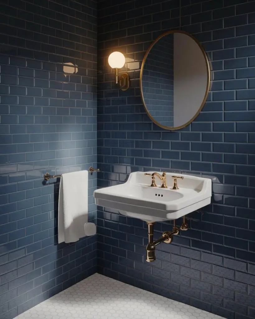 Don’t shy away from color just because your bathroom is small—blue tones are having a major moment in 2026, from powder blue subway tiles to deep navy accent walls. Designers are using color strategically to create depth and personality in compact spaces. A single wall painted in a rich cobalt can actually make a narrow bathroom feel more intentional and designed rather than accidentally small. Pair it with brass fixtures and white grout for a look that feels both current and classic.