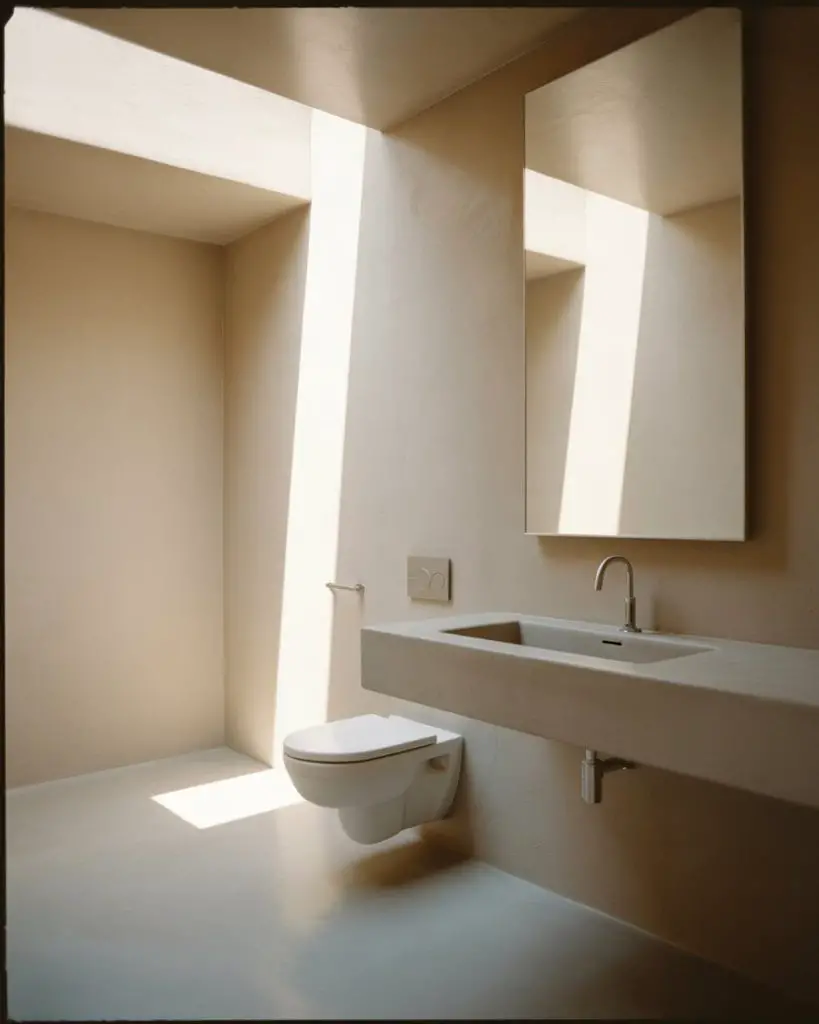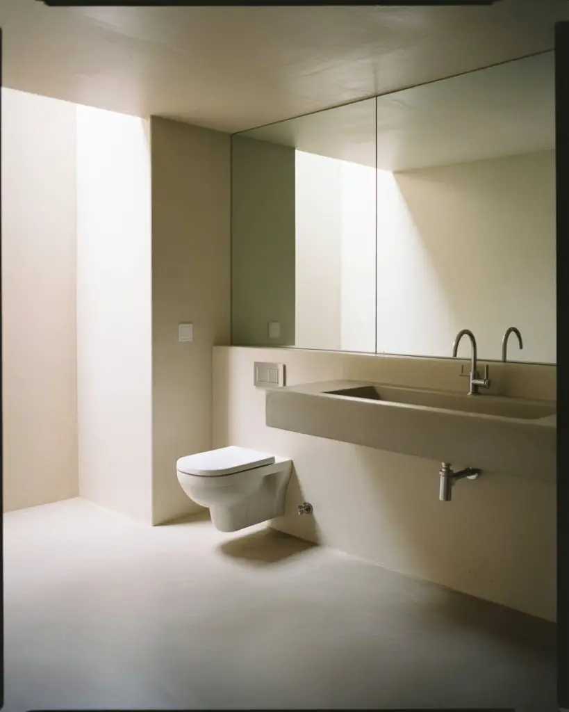 The modern small bathroom design minimal approach strips away everything non-essential, leaving only what truly serves a purpose. This isn’t cold or sterile—it’s about curating a space where clean lines, quality materials, and negative space create a sense of calm. Wall-mounted toilets, frameless glass showers, and concealed storage keep surfaces clear and sightlines uninterrupted. The result is a bathroom that feels larger than its actual dimensions because your eye isn’t constantly catching on visual clutter.
