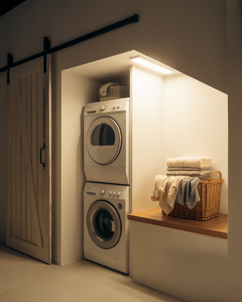 This is incredibly common in older East Coast cities where square footage is at a premium and basements are damp or unfinished. A friend in Philadelphia installed hers last year and said it completely changed her routine—no more lugging laundry down two flights of stairs. The biggest challenge is ensuring proper ventilation for the dryer, so consult a contractor if you’re retrofitting an existing bathroom.