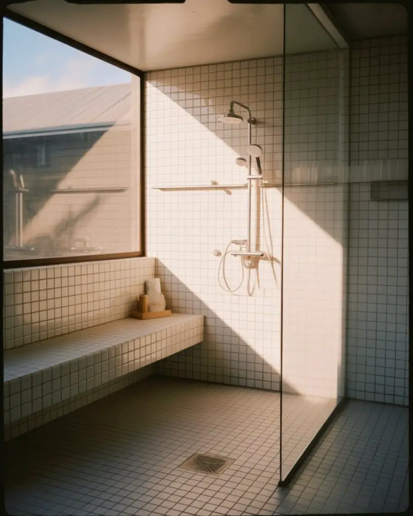 Committing to a shower only layout frees up valuable floor space and allows you to build in luxuries like a tiled bench or fold-down teak seat. The bench doubles as a footrest for shaving, a shelf for bath products, or simply a place to sit and enjoy the steam. Pair it with a handheld showerhead for flexibility, and choose slip-resistant floor tiles for safety. This layout is practical, modern, and surprisingly family-friendly.