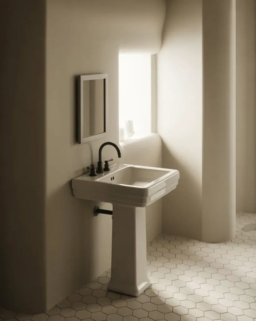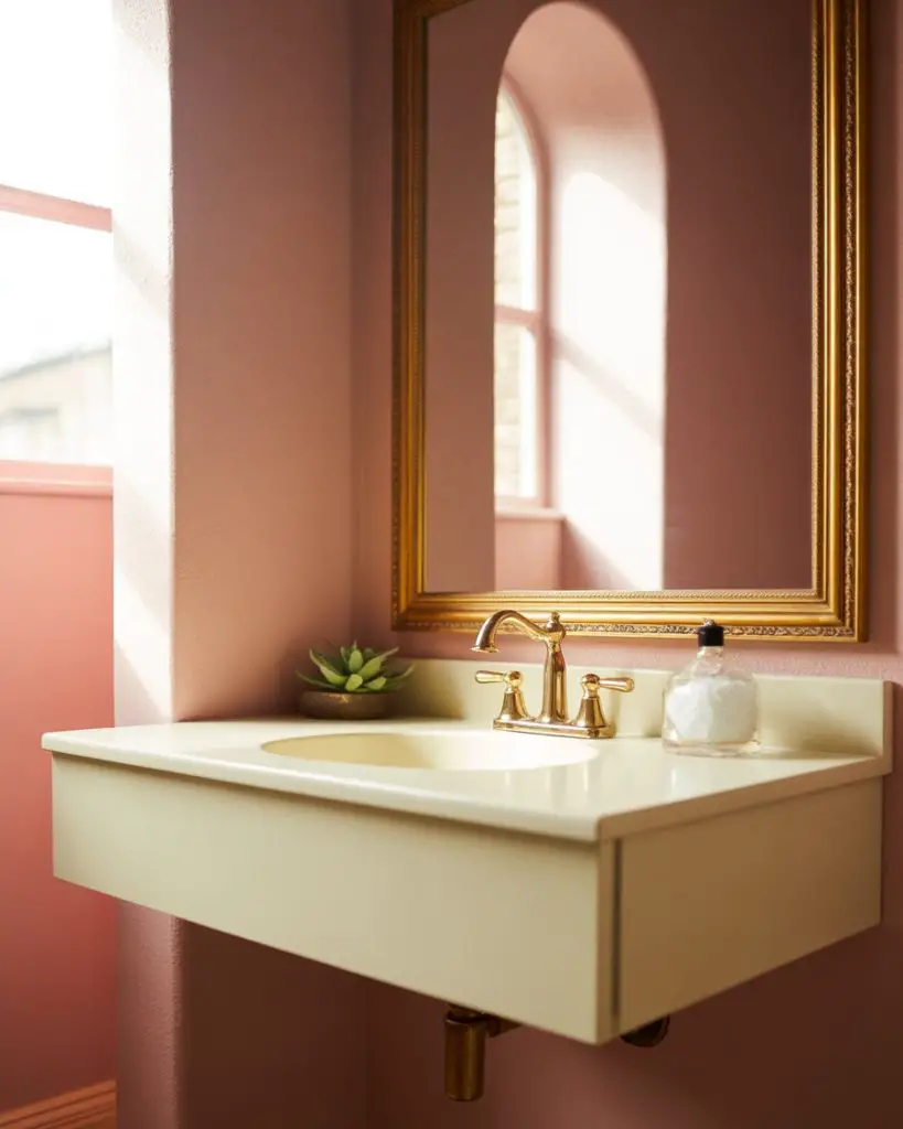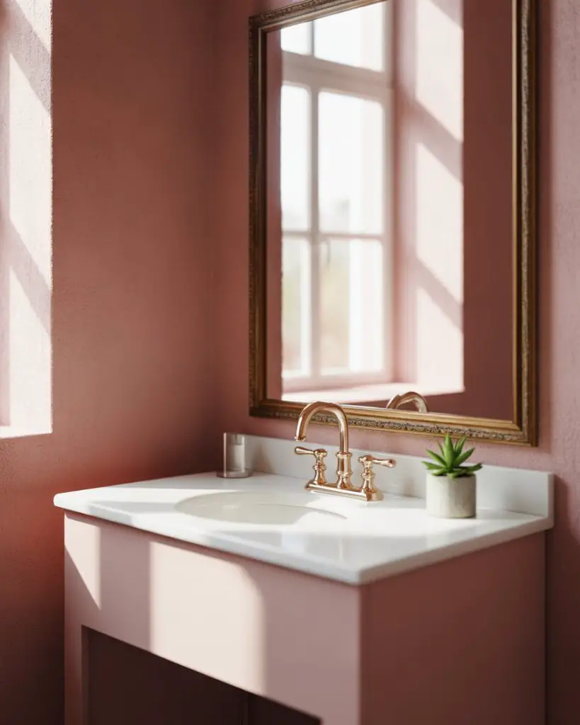 This color gained traction after several design magazines featured it in 2024, and it’s still climbing Pinterest boards in 2026. The warmth counteracts the cold, sterile feeling that all-white bathrooms can have, especially in basements or interior rooms without windows. One designer noted that pink reflects light beautifully, which is why it works so well in spaces where natural light is limited.