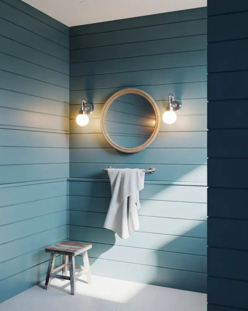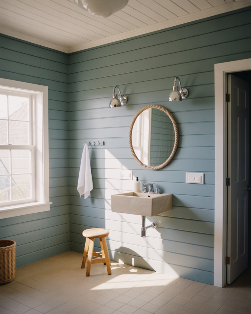 Painting tongue-and-groove shiplap in a soft coastal blue brings texture and warmth to a small bathroom without adding bulk. The horizontal lines create a subtle sense of width, while the color evokes calm and openness—perfect for a space that can feel claustrophobic. Leave the ceiling white to maintain height, and add brass or chrome fixtures for a touch of refinement. This look translates beautifully whether you’re near the ocean or landlocked in Kansas.