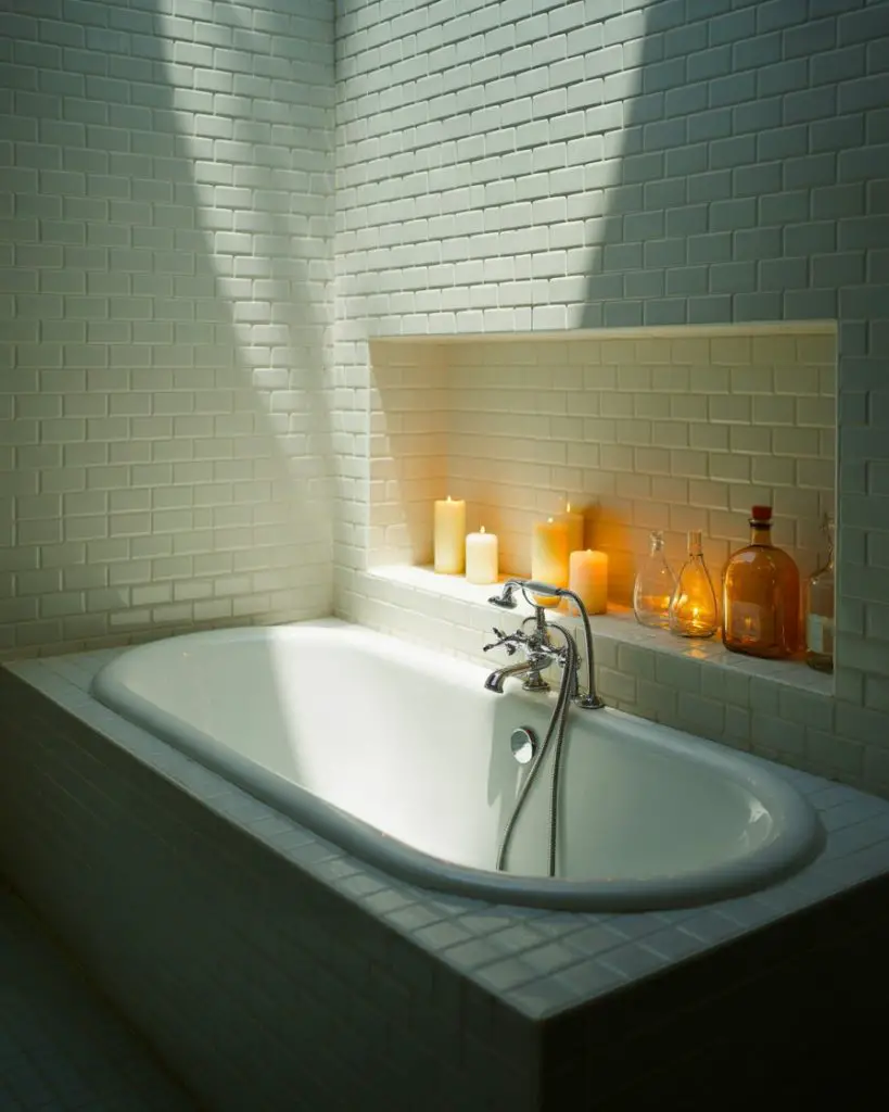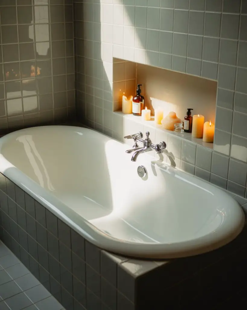 If you’re committed to keeping a bathtub in a tight space, nestle it into an alcove with built-in shelving on one or both sides. Recessed niches for shampoo bottles, candles, and bath salts keep essentials within reach without cluttering the tub deck. Tile the alcove floor to ceiling for a seamless look, and consider a deep soaking tub to maximize relaxation in minimal square footage. This setup feels spa-like and intentional.