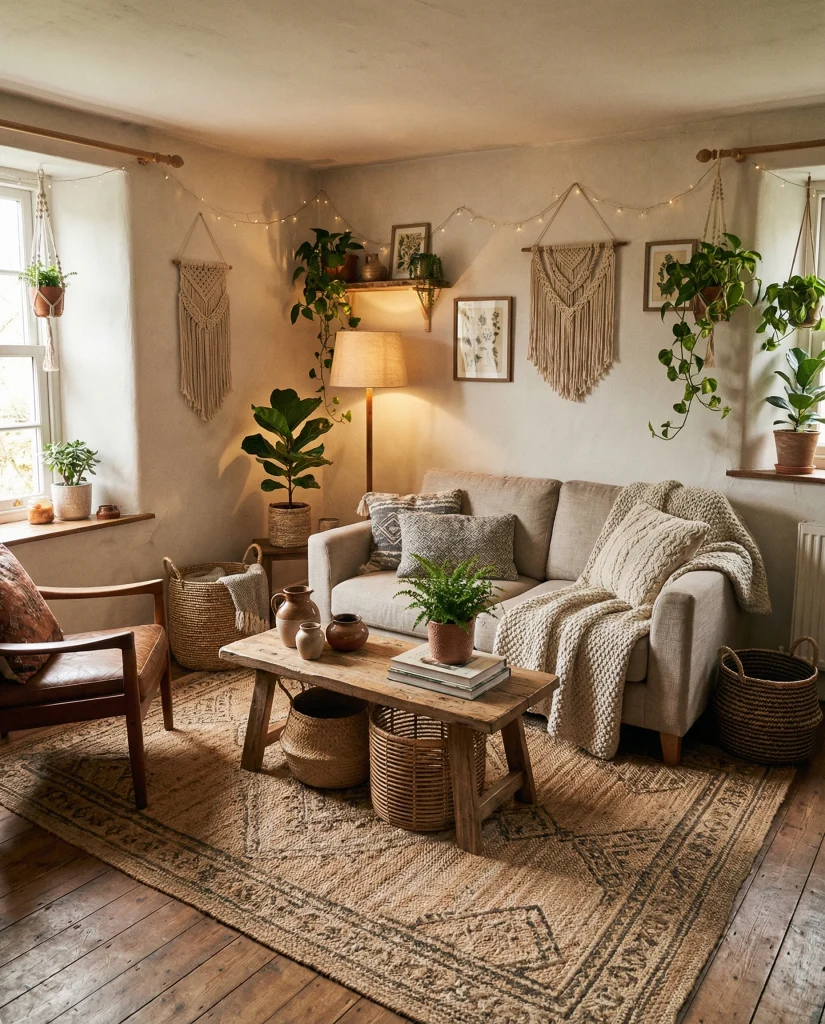 American lifestyle context: In the USA, many renters appreciate this style, as it has a personal touch, a relaxed look, and matches well with a thrifted collection. This style and the textures help small spaces feel like the decor has been collected over time, rather than just decorated in a single effort.