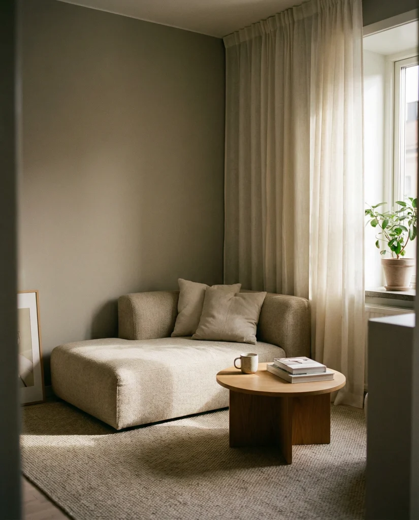 Even without high ceilings, subtle loft-inspired touches help a room feel curated. Drawing from a cozy tiny house loft aesthetic, you can use light woods and layered textiles. This pairs nicely with relaxed tones found in cozy apartment layouts.