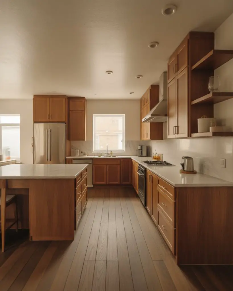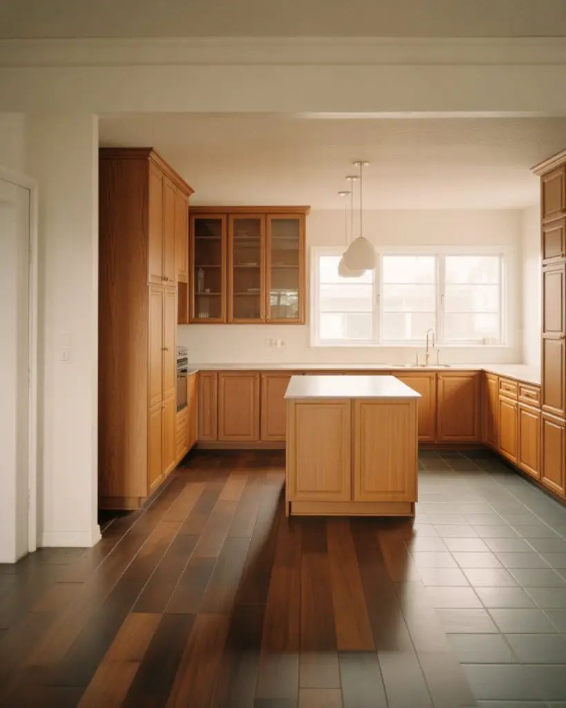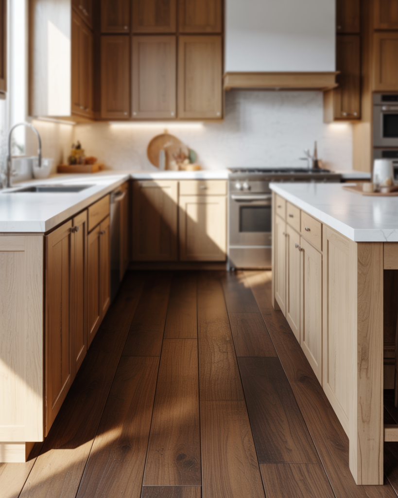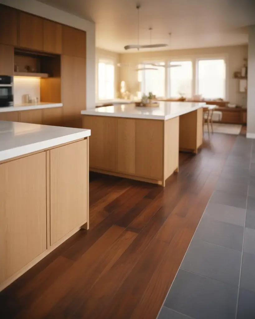 This approach has gained traction particularly in coastal and urban markets where homeowners want distinct zones without walls or abrupt transitions. A micro anecdote: one designer client in Seattle installed dark oak floors in her kitchen to define the cooking zone, then switched to pale gray concrete-look tile for the dining area, with her white oak cabinets tying both together through shared warm undertones.
