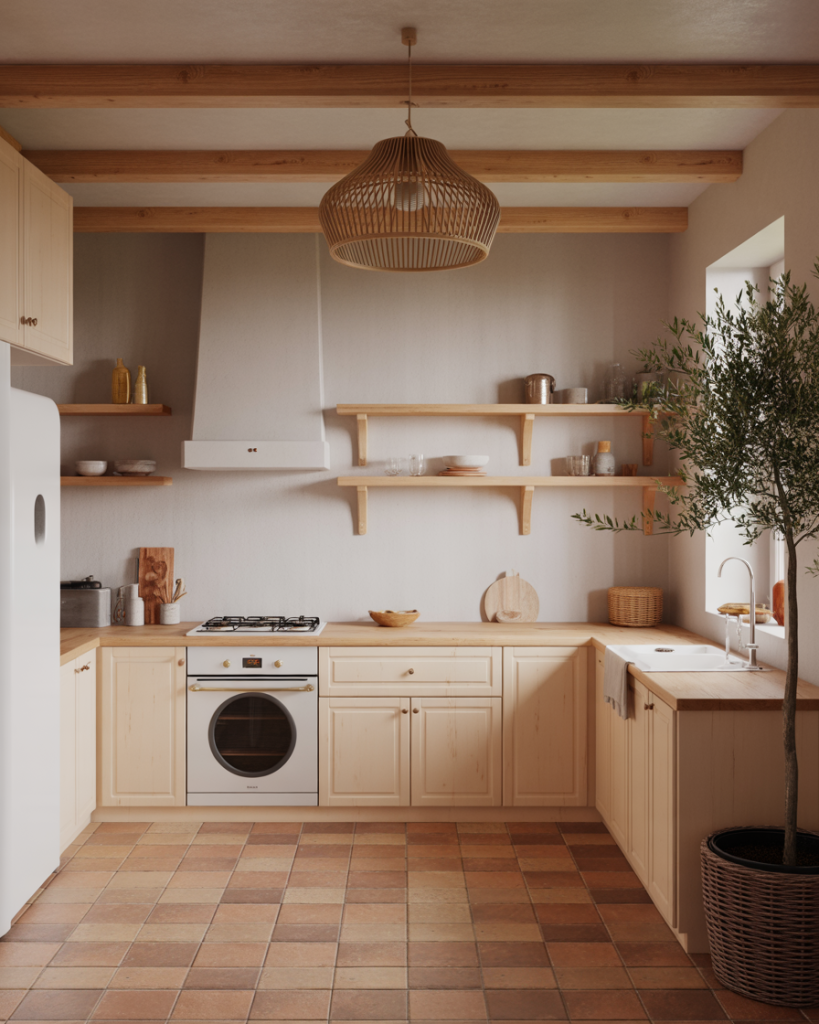 11. White Oak Cabinets with Terracotta Floor Tiles
