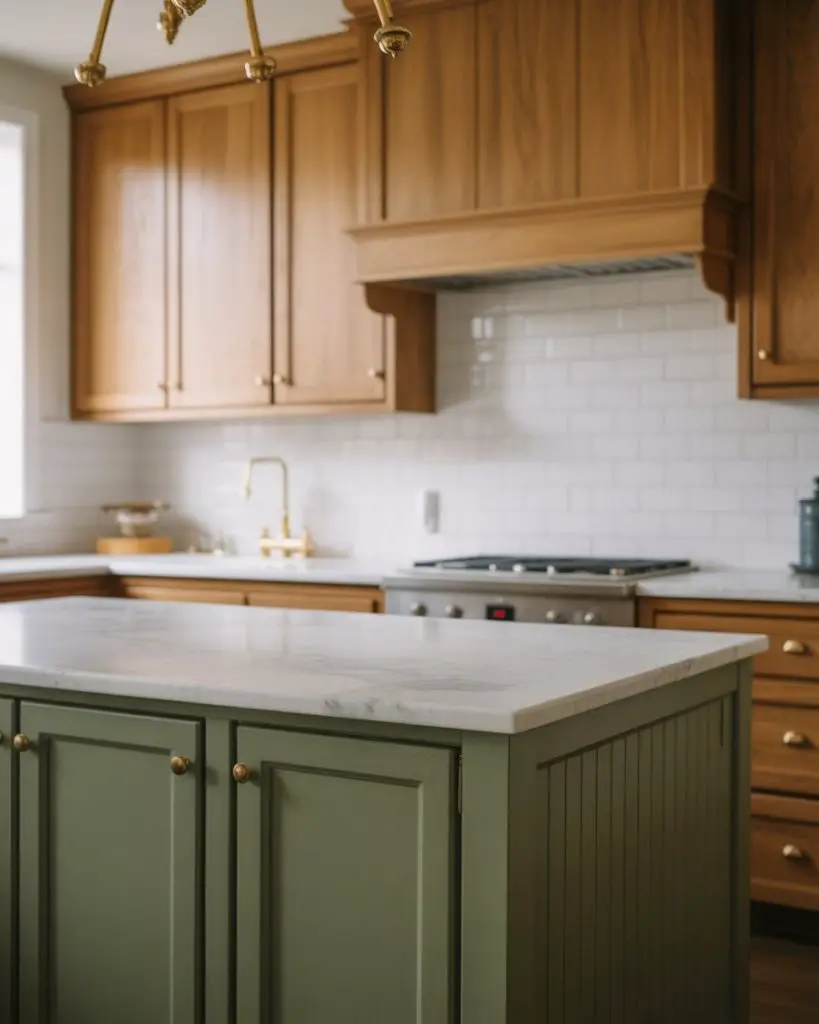This trend gained serious momentum as homeowners moved away from all-white kitchens but weren’t ready to commit to color everywhere. The island acts as a lower-risk testing ground for bolder choices, and green in particular has staying power because it connects to nature and feels calming rather than energizing. Across suburban and rural America especially, the green island with white oak surround has become the new neutral—distinctive but not divisive.