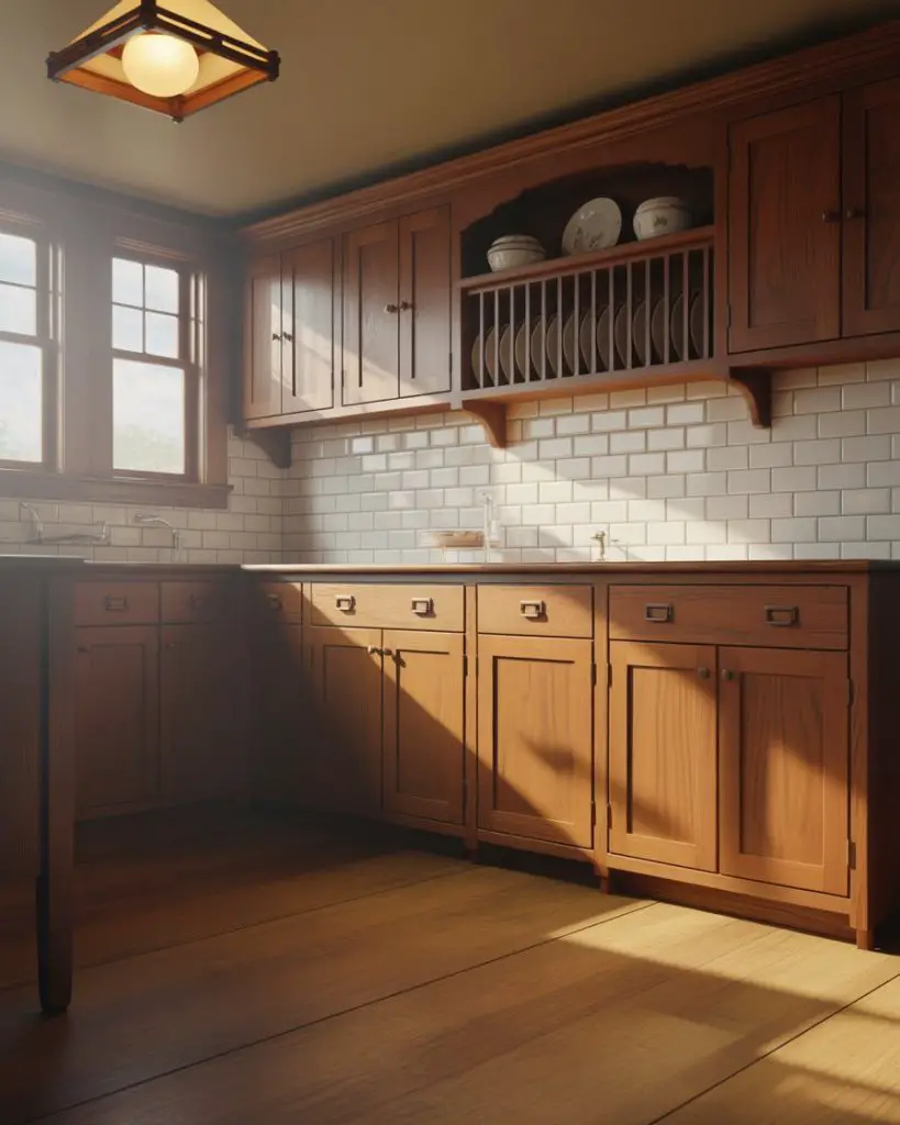 Drawing style inspiration from American Craftsman architecture, white oak cabinets with simple, honest construction details honor the movement’s emphasis on quality materials and visible joinery. Quarter sawn oak was the wood of choice in original Craftsman kitchens, and modern interpretations maintain that heritage through clean-lined shaker doors, functional hardware, and minimal ornamentation that lets the wood’s character shine.