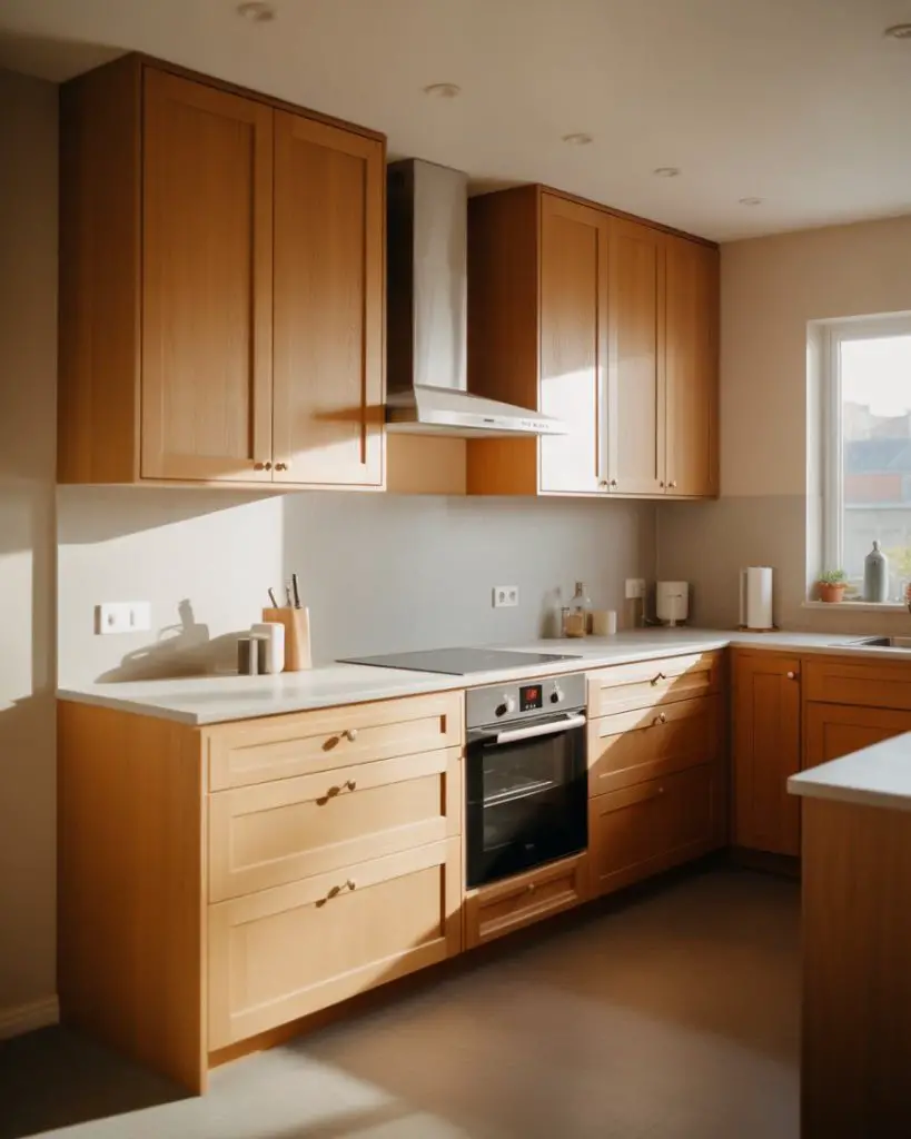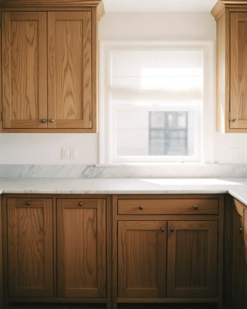 Expert cabinet makers emphasize the importance of testing stain on actual white oak samples from your cabinet order, as the wood’s color and grain can vary significantly between batches. A common mistake is choosing stain based on photos alone—the same stain can look completely different depending on whether you’re using rift sawn, quarter sawn, or plain sawn oak, and even lighting conditions in your home will affect the final appearance dramatically.
