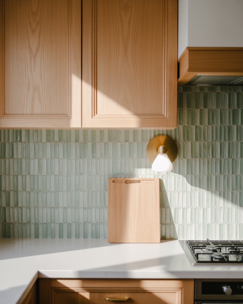 Expert insight suggests that the backsplash is one area where homeowners can take risks without enormous commitment—it’s relatively affordable to change compared to cabinets or countertops. That said, choosing something you genuinely love rather than following fleeting trends ensures you won’t regret it three years from now. The backsplash should complement your lifestyle too: busy patterns hide splatters well, while solid colors show every drop but create a sleek, gallery-like backdrop for the beautiful oak cabinets.