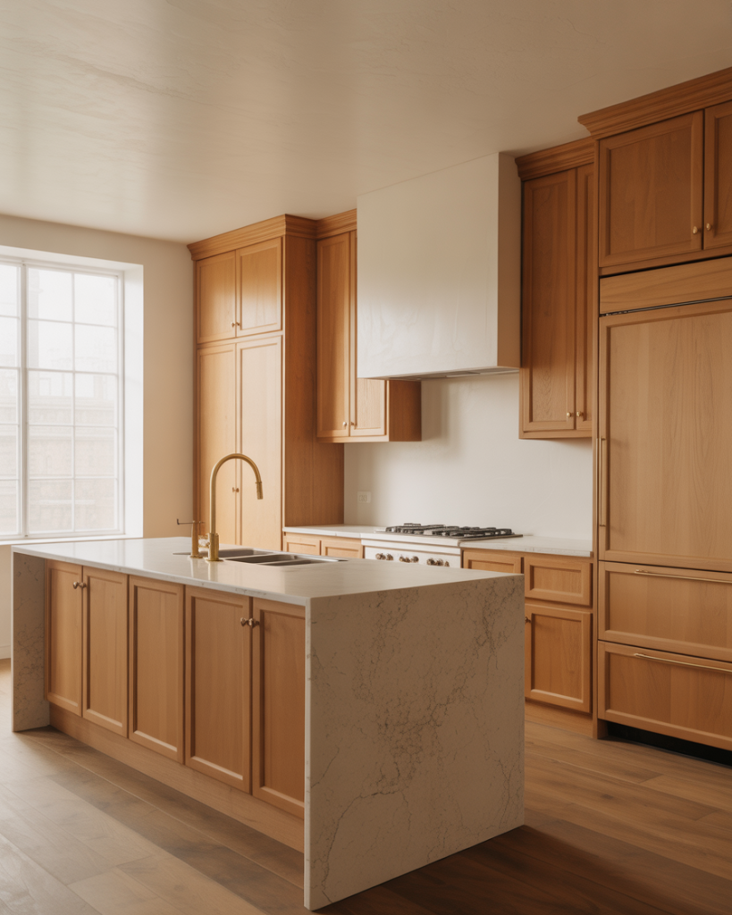 This style works best in urban lofts and newer construction where clean lines are paramount. The straight grain of rift sawn oak makes it easier to match cabinet doors across large runs, which is why designers often specify it for floor-to-ceiling installations or kitchens with extensive cabinetry. It’s a premium choice that rewards those who value visual coherence and understated sophistication over rustic charm.