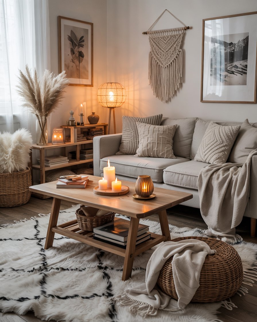 One rising trend for winter decorations is the embrace of neutral tones and Hygge textures in the living room. Picture creamy throws, thick wool rugs, and candles set on shelves to create that unmistakable feeling of coziness. Scandinavian cabin-inspired, the styles are all about layering tactile materials so that ideas for the home feel timelessly cozy. Then throw in some warm lighting just for that grounded peaceful feel and mixing with natural wood furniture that works wonderfully post-Christmas.