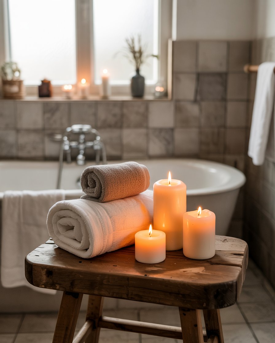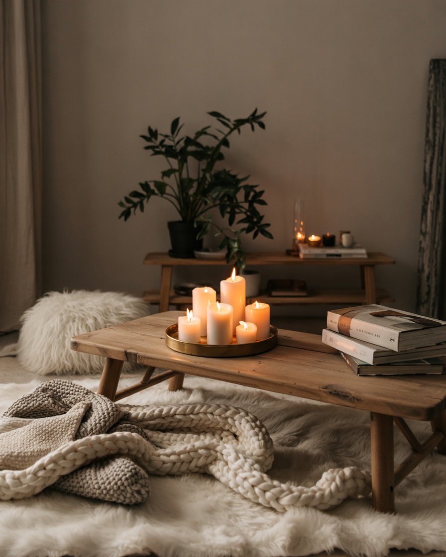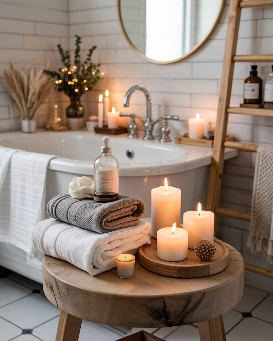 Even bathrooms can embrace Hygge for winter decorations. Add wood stools, baskets with rolled towels, softly glowing candles, and neutral Scandinavian textiles to create a spa-like atmosphere. This ideas for the home cozy trend is gaining momentum for 2025–2026 as homeowners seek warmth in unexpected places. Perfect after Christmas for quiet self-care moments.