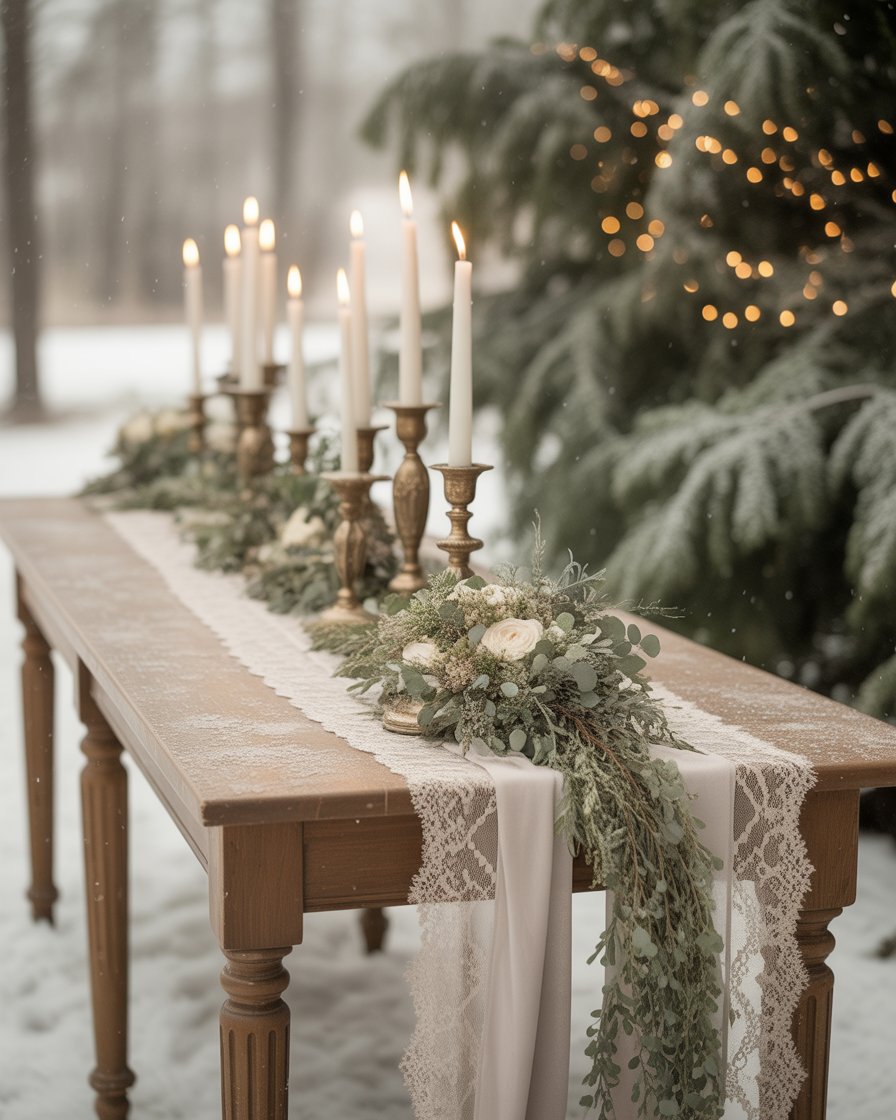 Winter weddings in 2025–2026 lean vintage, rustic, and neutral. Think antique silver candlesticks paired with lace runners and natural greenery interwoven in elegant tablescapes. The blend of old-world charm with soft candlelight creates a romantic vibe just right for the season. This could also be carried to small ideas for the home gatherings, giving that timeless elegance that is not Christmas-associated.
